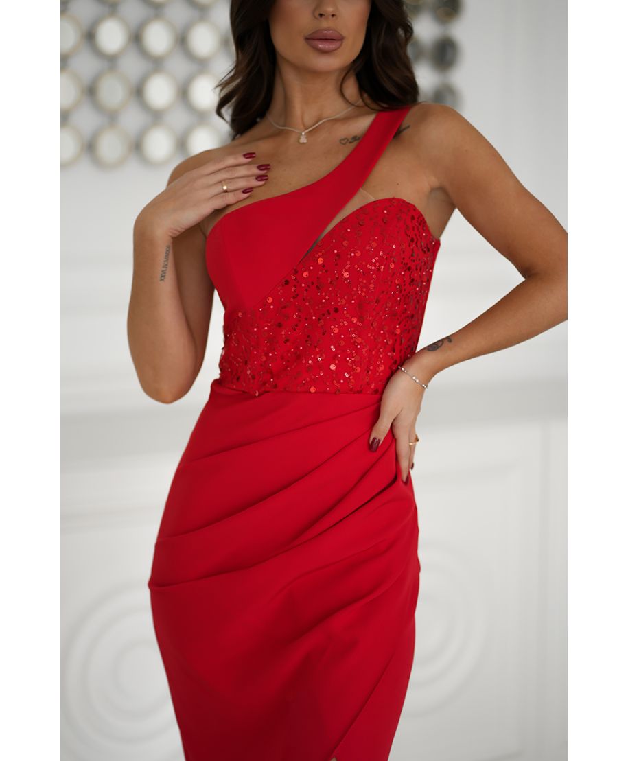 Abito a sirena - Monospalla - Corpetto decorato – Rosso