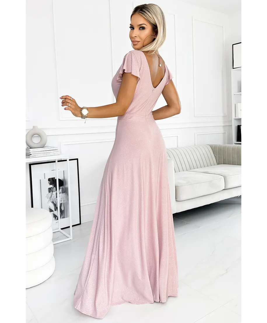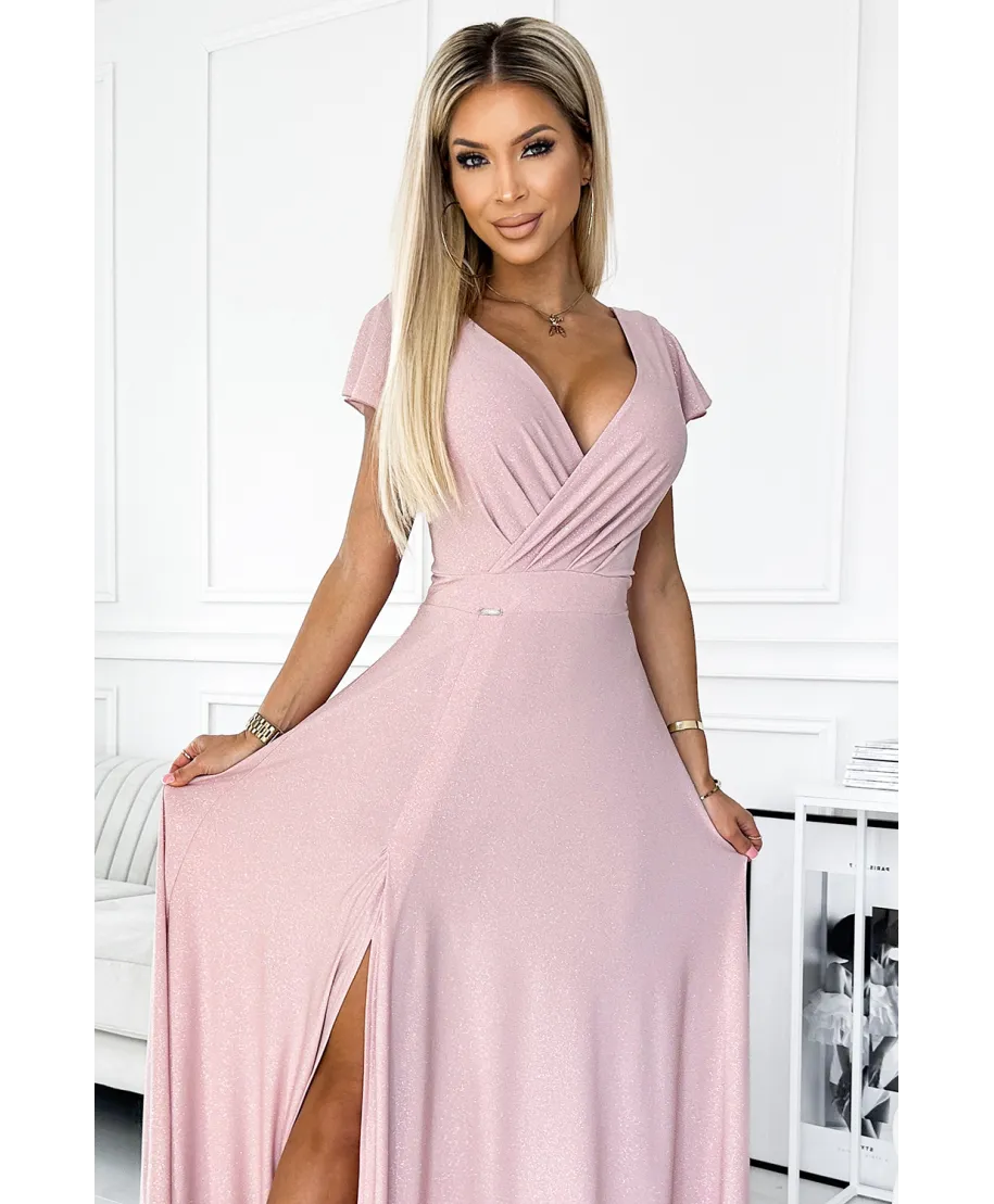 Abito cerimonia lungo - Rosa cipria - Scollatura incrociata - CRYSTAL - GOGOLFUN.IT