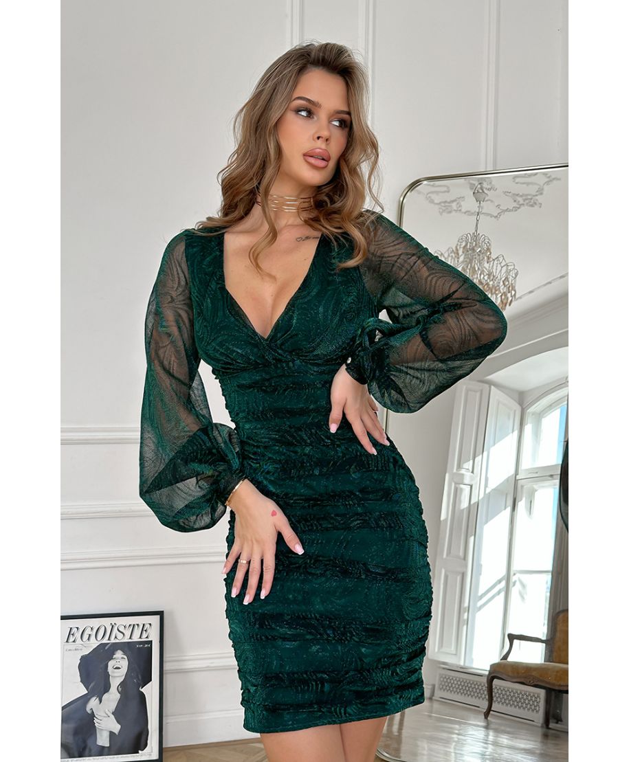 Abito corto a tubino - Ampie maniche - Verde bottiglia