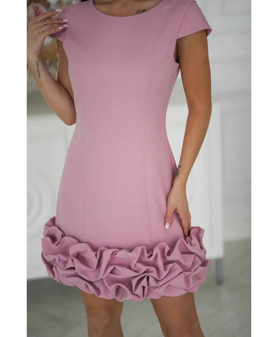 Abito corto elegante rosa antico con balza tridimensionale – Marzia
