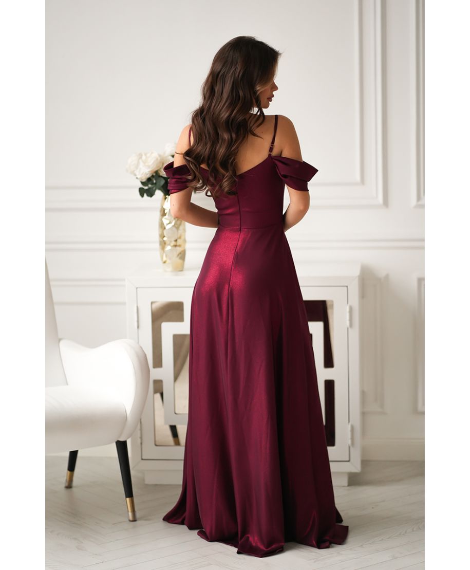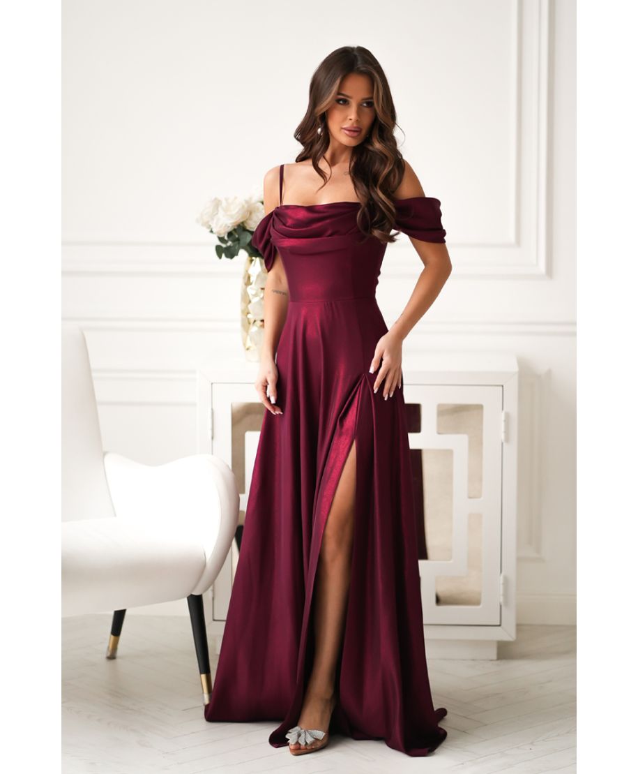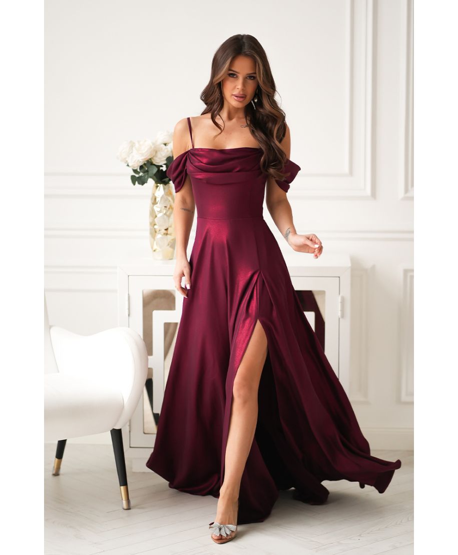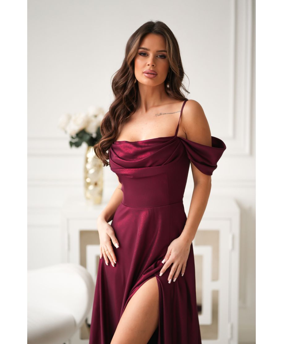 Abito da Cerimonia Lampone con Spalle Scoperte e Gonna Fluida – Raffinatezza Moderna