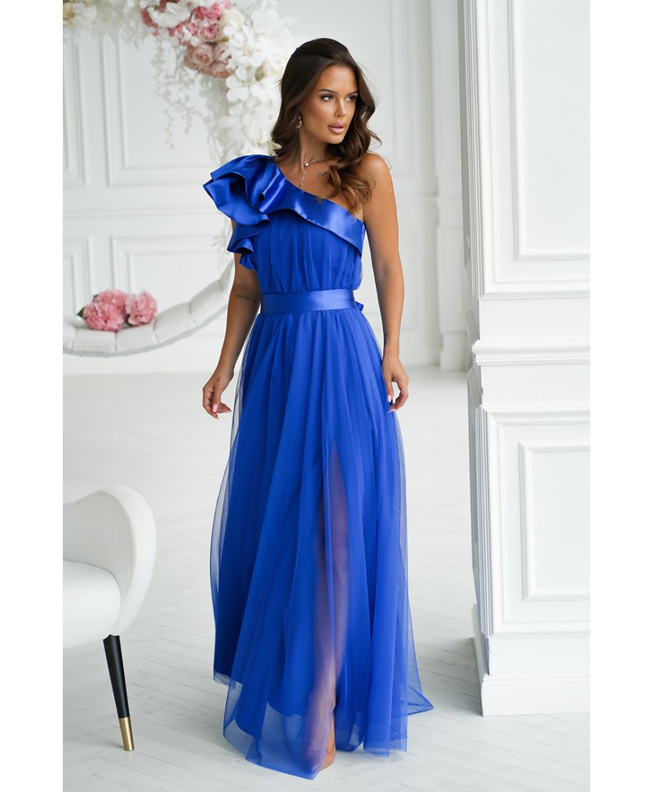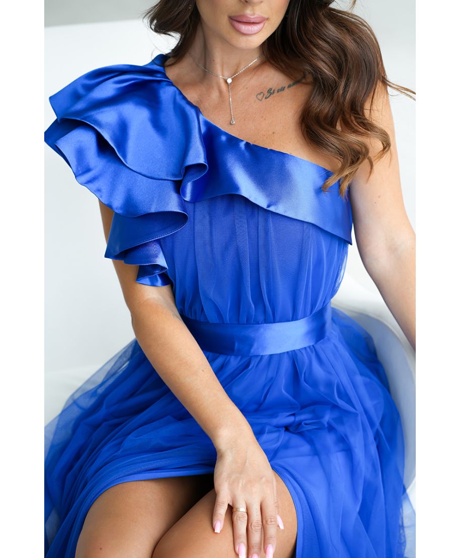 Abito da cerimonia monospalla blu - In tulle - Vivi