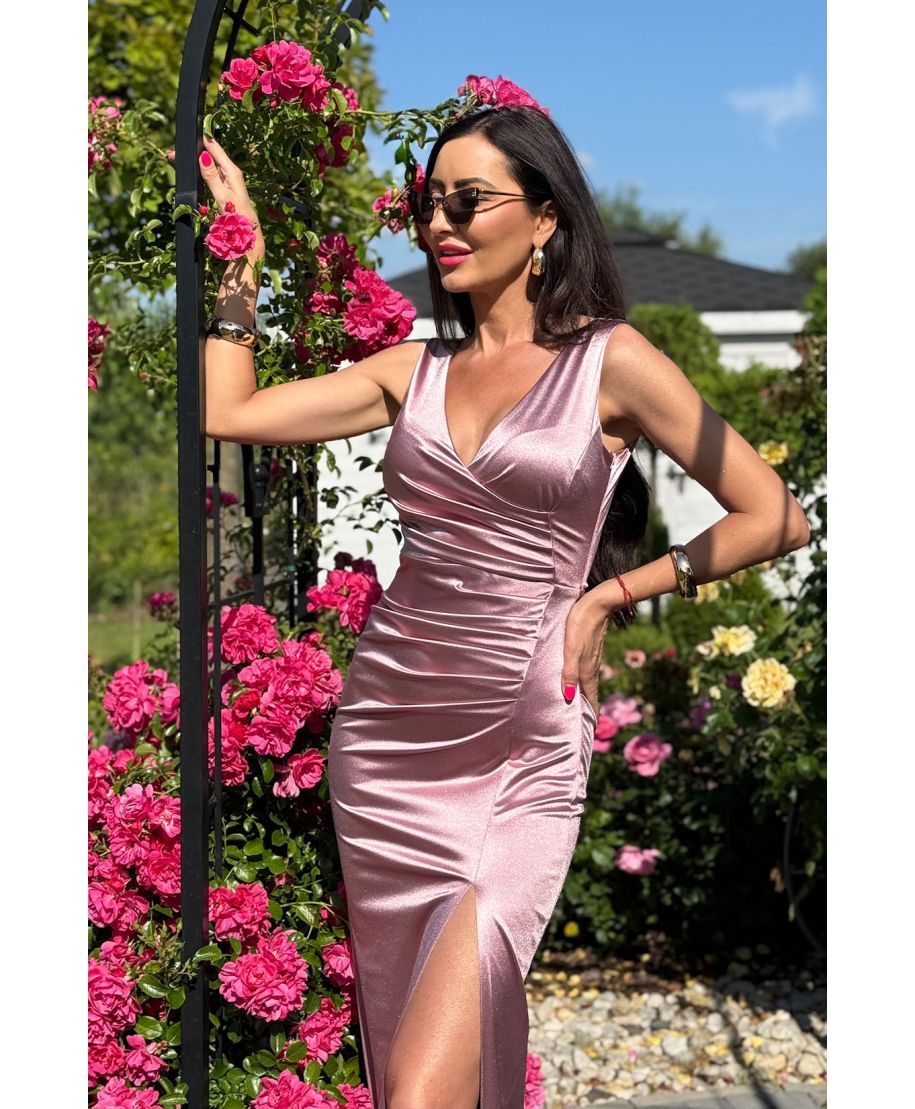 L’abito CLEO è una proposta raffinata pensata per le donne che amano l’eleganza moderna con un tocco di sensualità. Realizzato in satin lucido e morbido, valorizza la silhouette e aggiunge un’allure sofisticata a ogni occasione serale. La tonalità rosa ghiacciato illumina delicatamente l’incarnato, mentre la lunghezza maxi con spacco profondo mette in risalto la gamba e dona leggerezza al look.