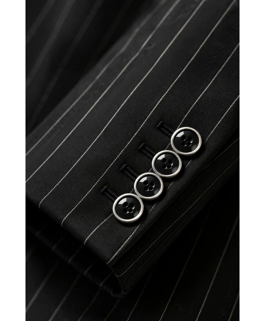 - Eleganza per ogni cerimonia: Il gessato nero elevato dalla raffinatezza del doppiopetto.