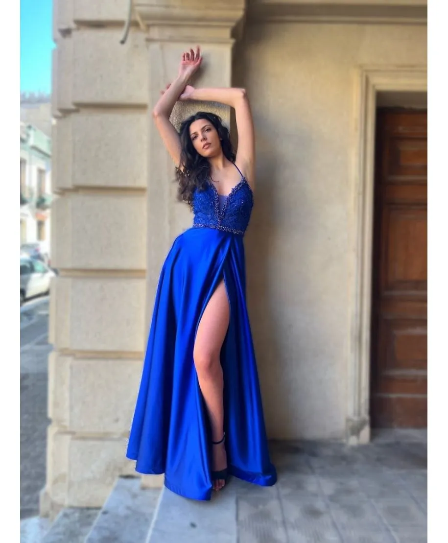 Semplicemente bellissimo. Abito elegante blu cobalto è una validissima alternativa ai classici colori come nero o rosso. Giovanile e sensuale ideale sia per i matrimoni che per un diciottesimo compleanno. Abito che vi proponiamo è un mix di eleganza e sensualità. Il corpetto è aderente e veste bene sia seno piccolo che seno abbondante. Da indossare con accessori argento o se preferite neri per un perfetto color block.