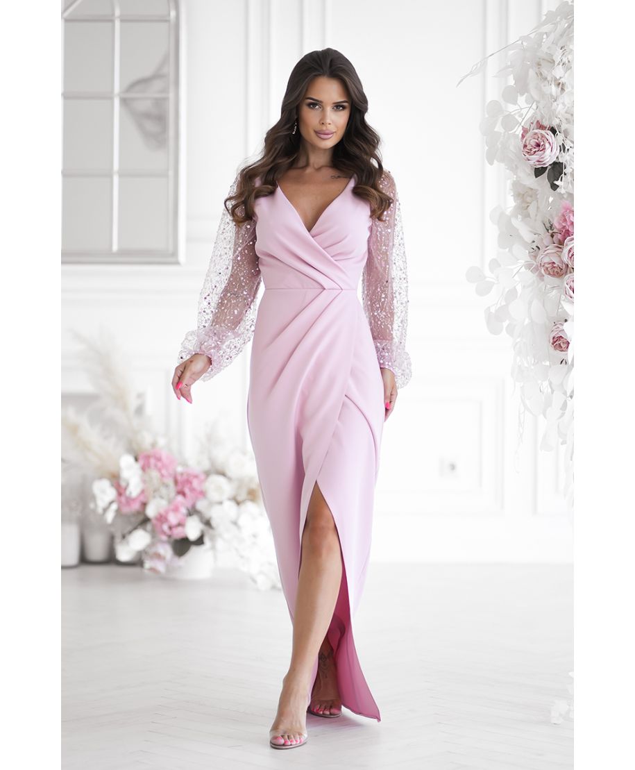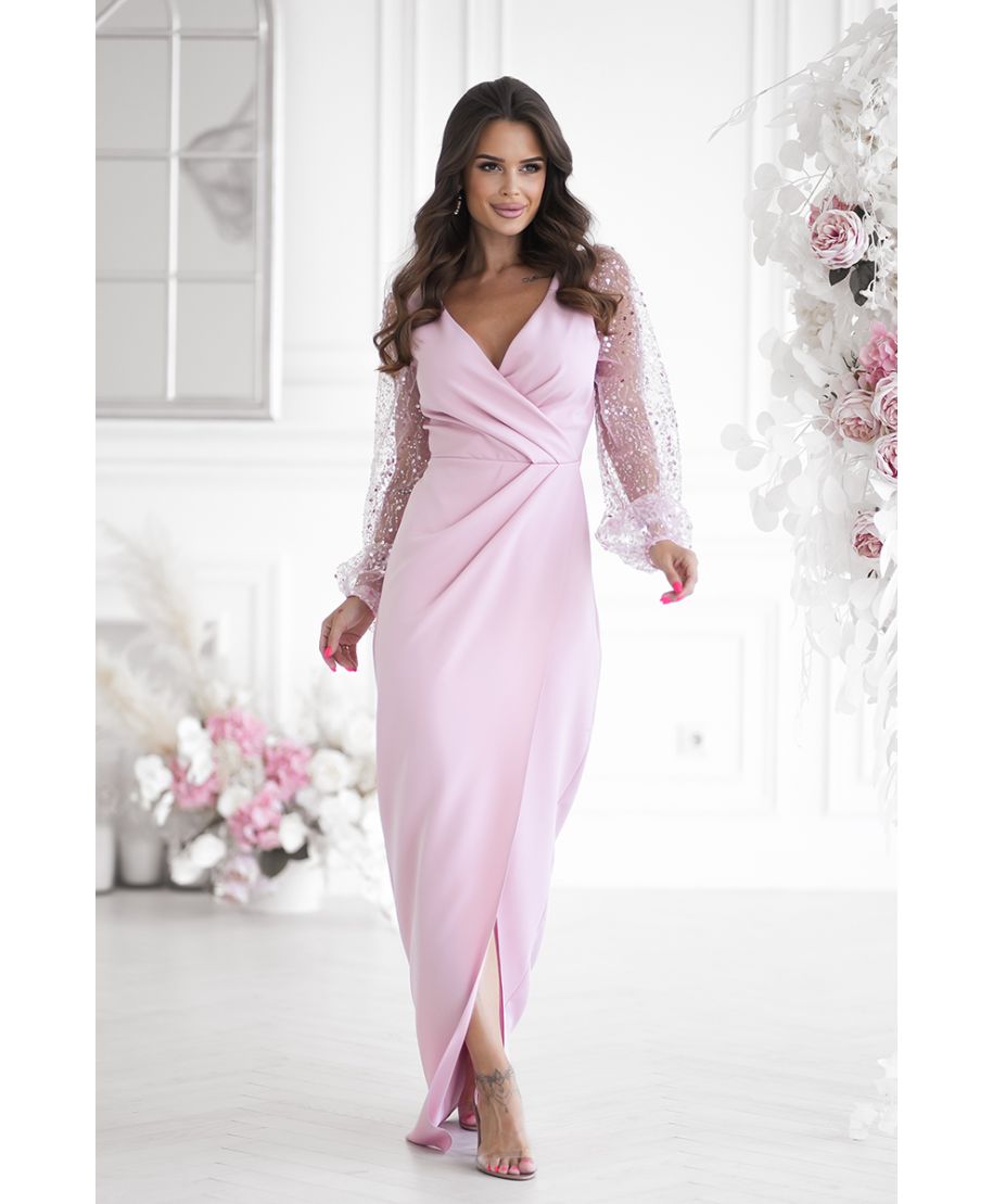 • Abito elegante, lungo - Maniche in paillettes - Colore rosa sporco - Scarlet