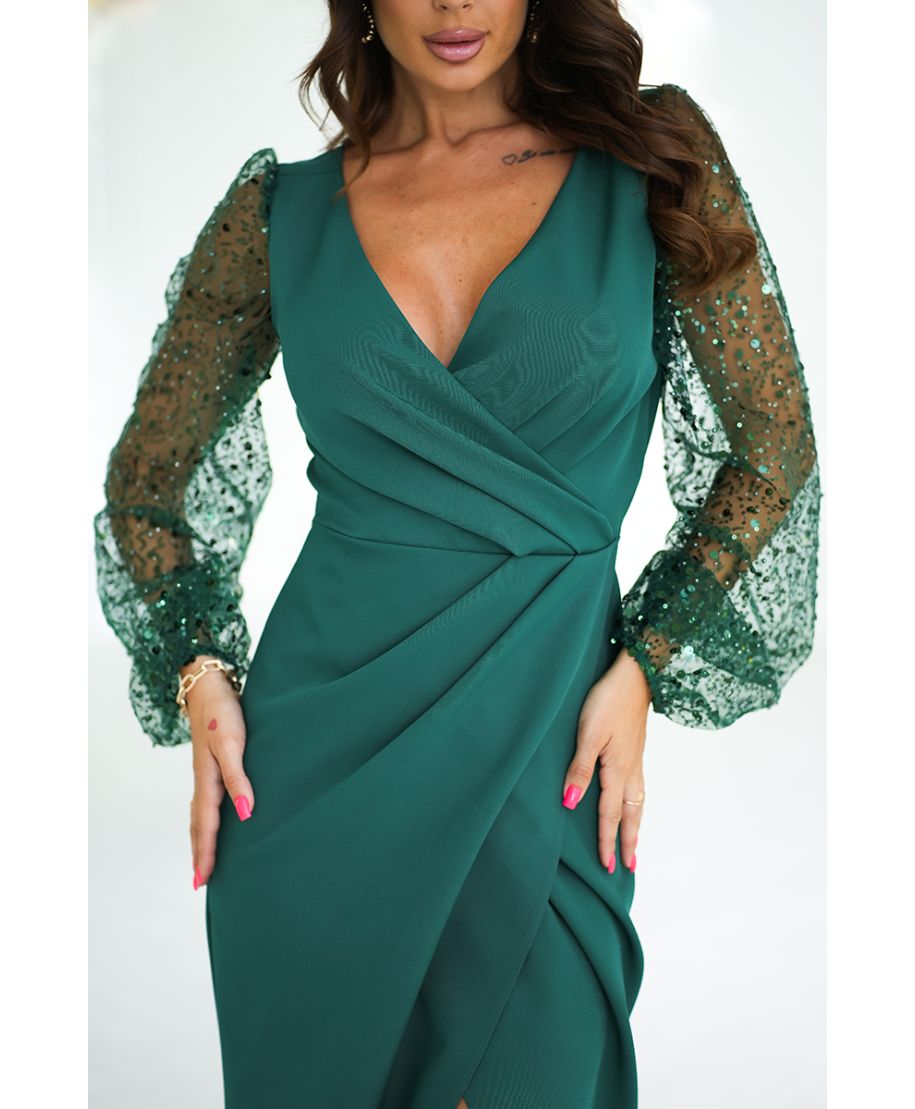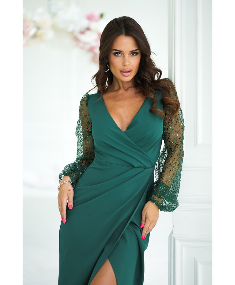 Abito elegante, lungo - Maniche in paillettes - Verde bottiglia - Scarlet