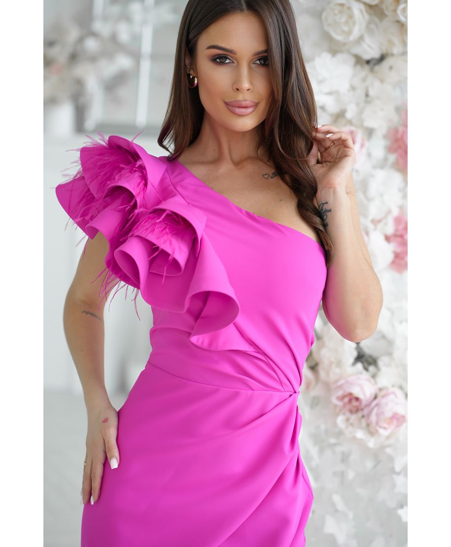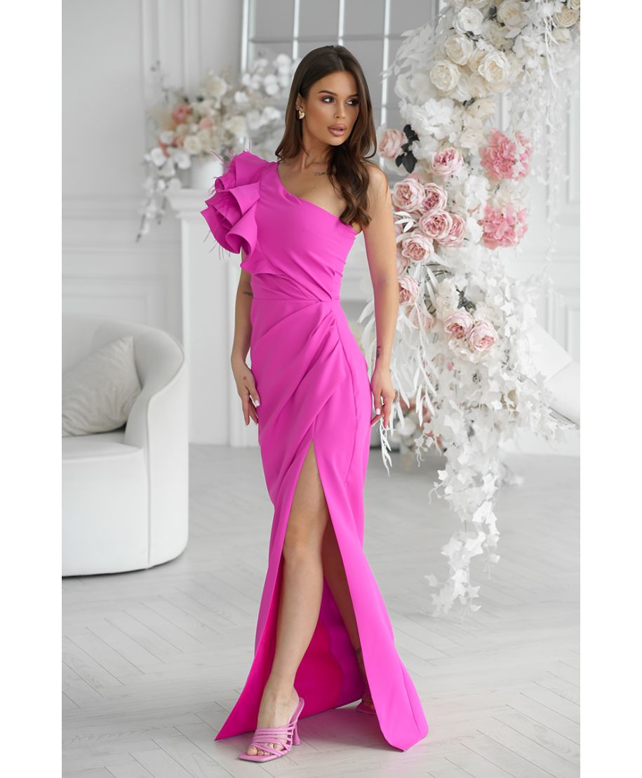 Abito elegante, lungo – Mono spalla - Colore fuxia