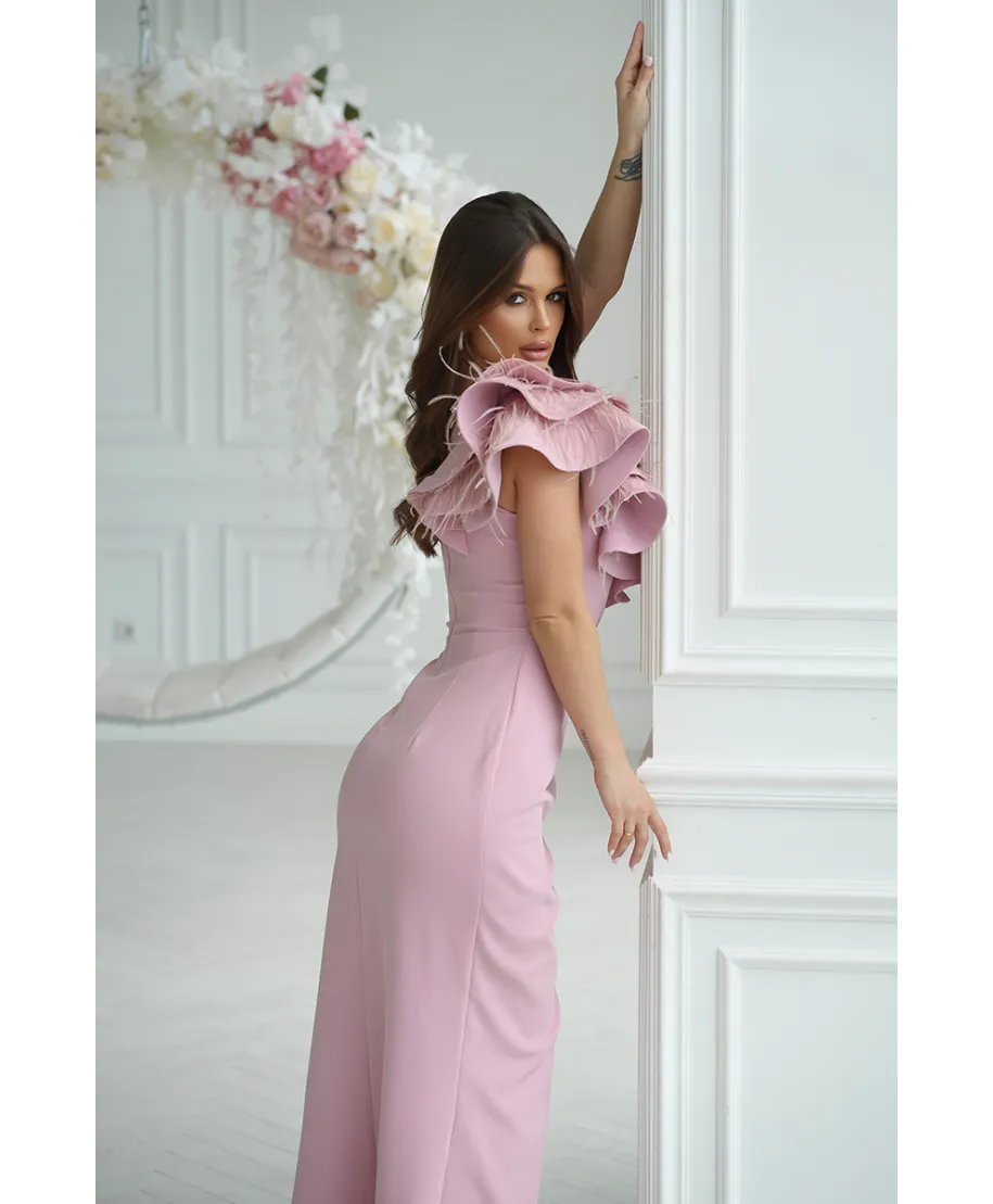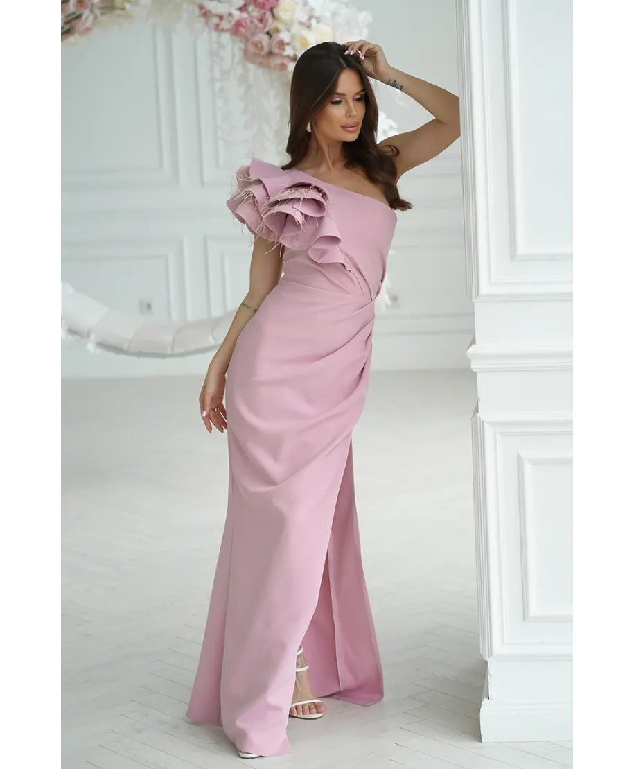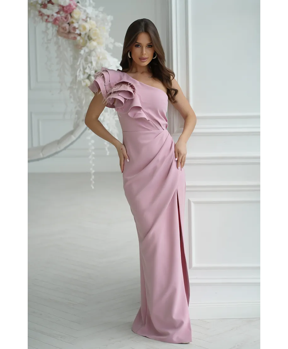 Abito elegante, lungo – Mono spalla - Rosa sporco - Fiora