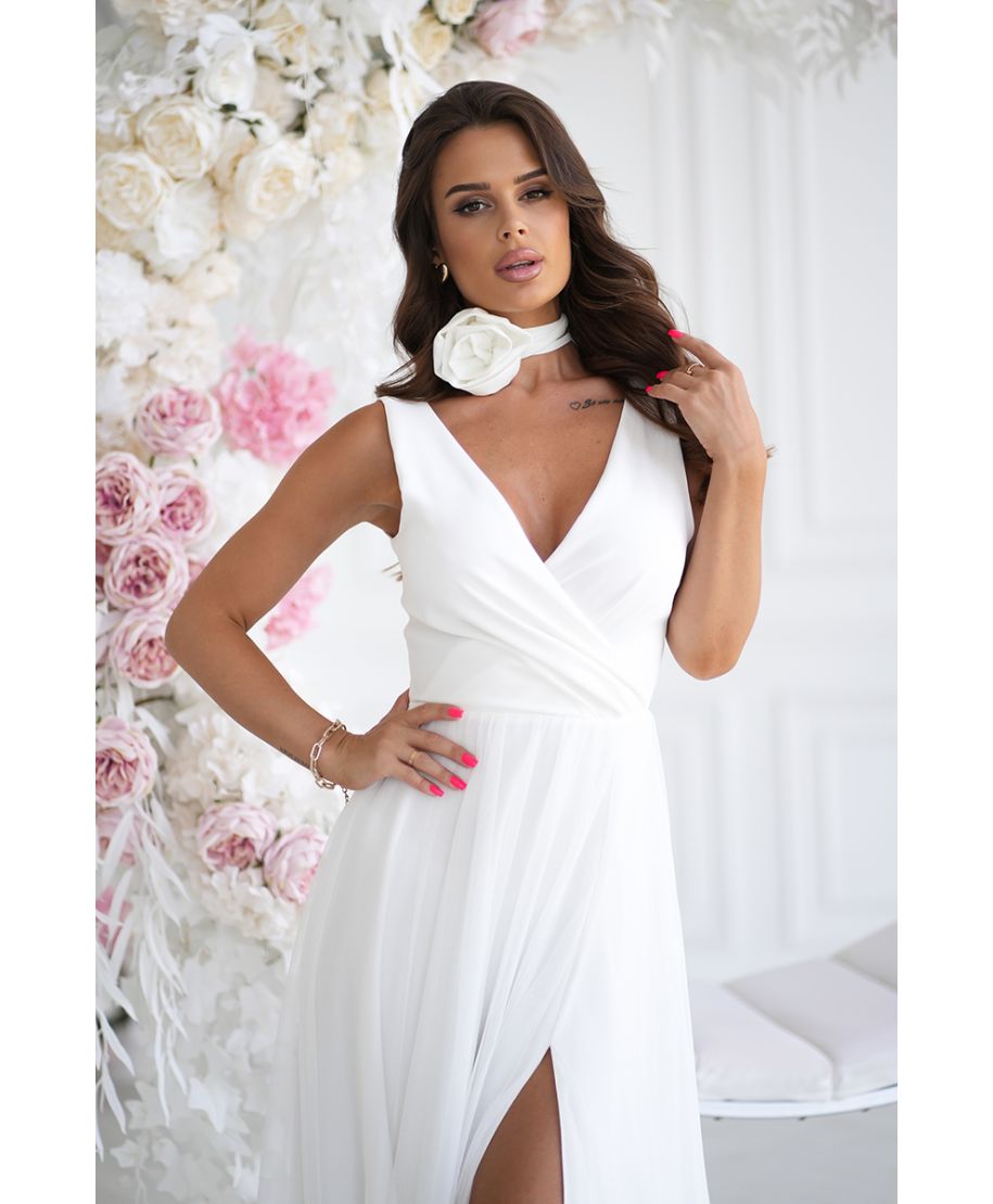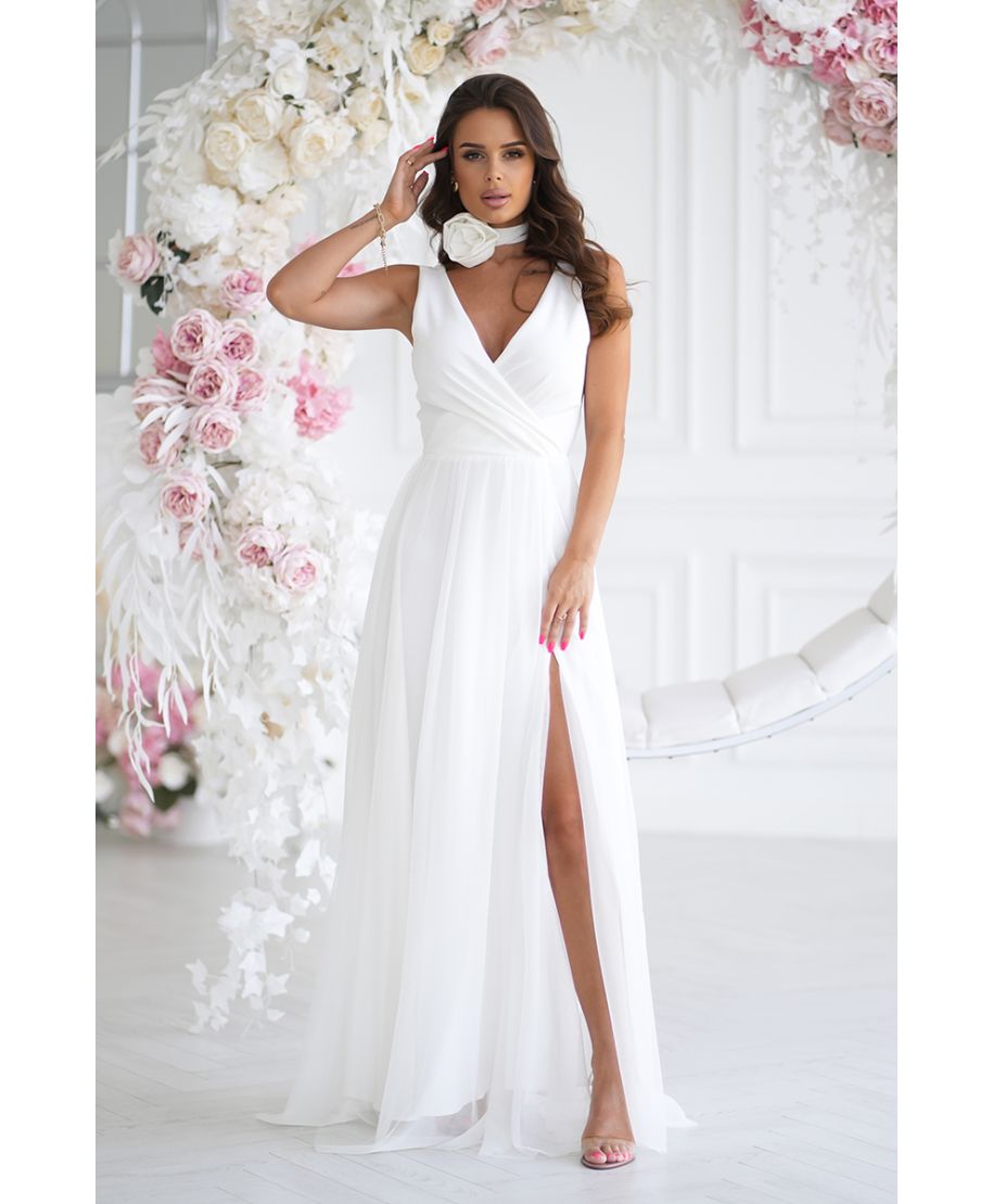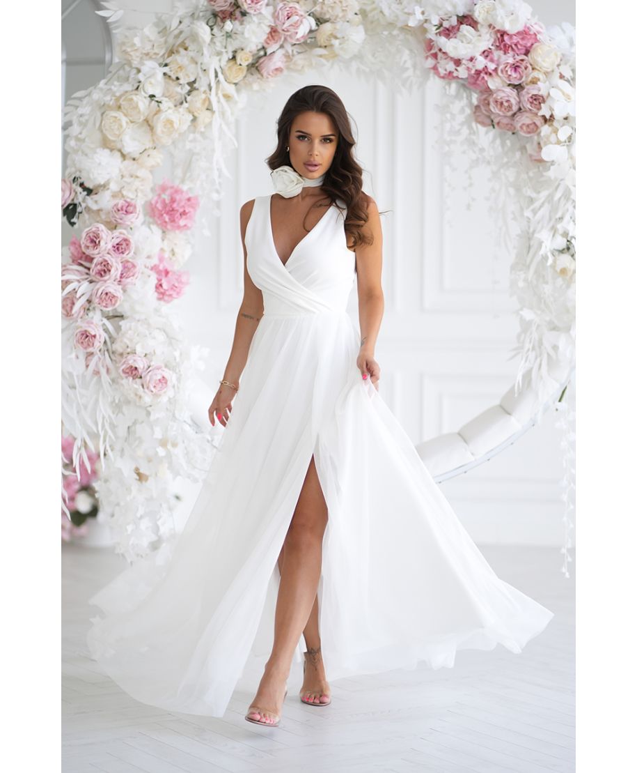 Abito elegante lungo - Spacco sulla gamba - Colore ecrù
