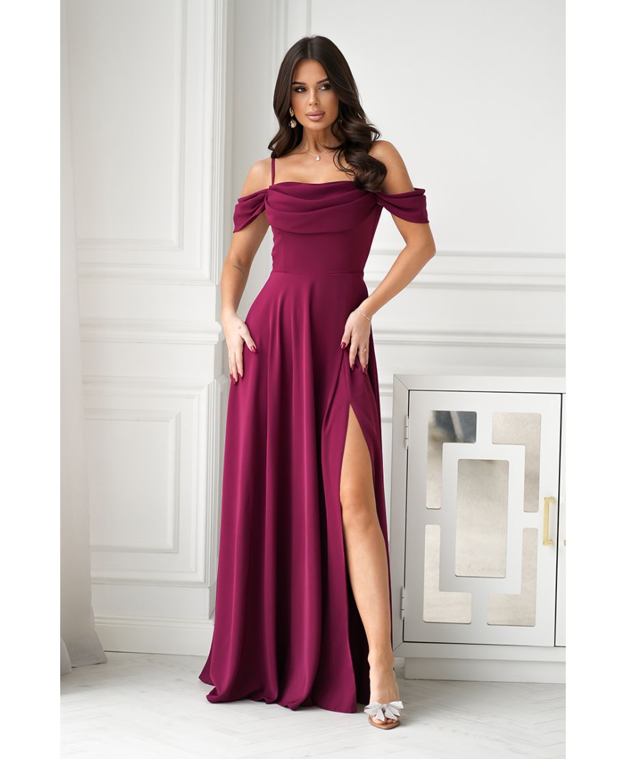 Abito elegante, lungo - Spacco sulla gamba - Spalline cadenti - Bordeaux