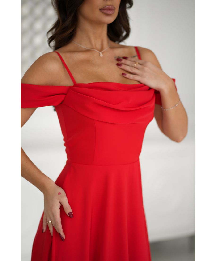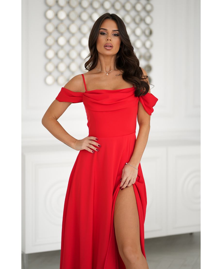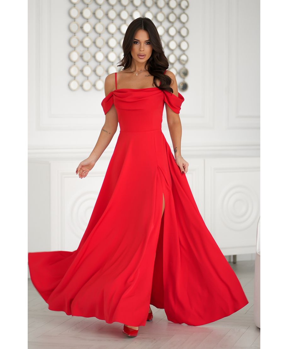 Abito elegante, lungo - Spacco sulla gamba - Spalline cadenti - Rosso