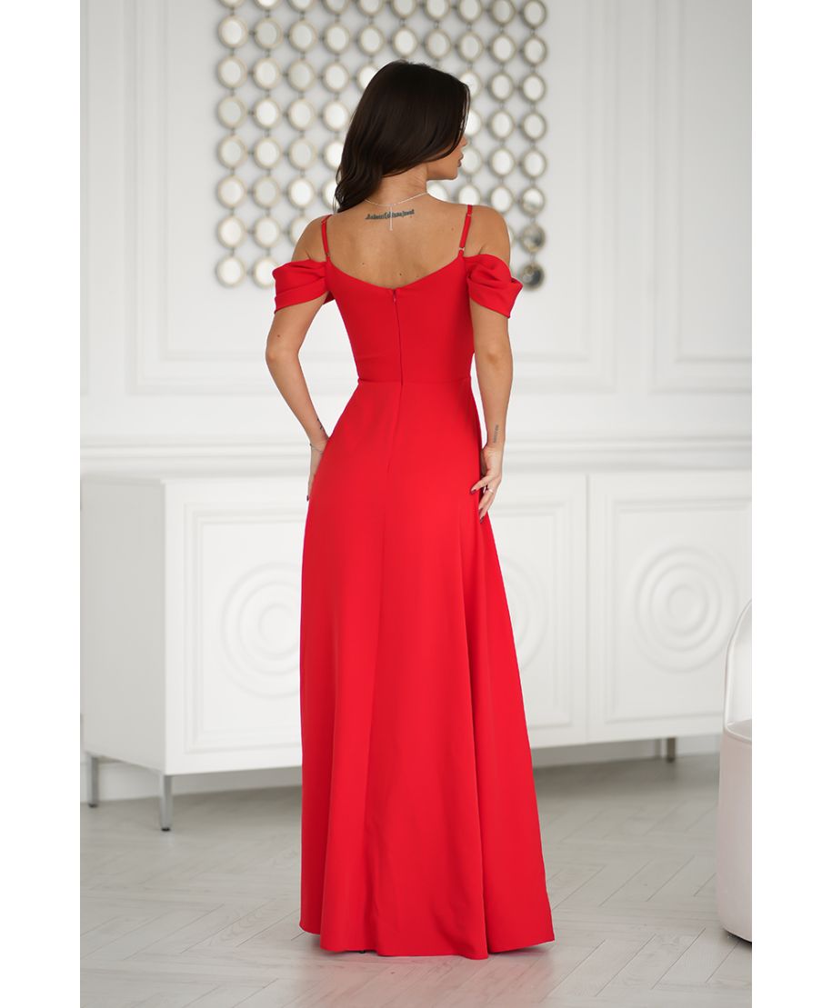Abito elegante, lungo - Spacco sulla gamba - Spalline cadenti - RossoCOMPRA PER TELEFONO: WhatsApp 347-324-4163