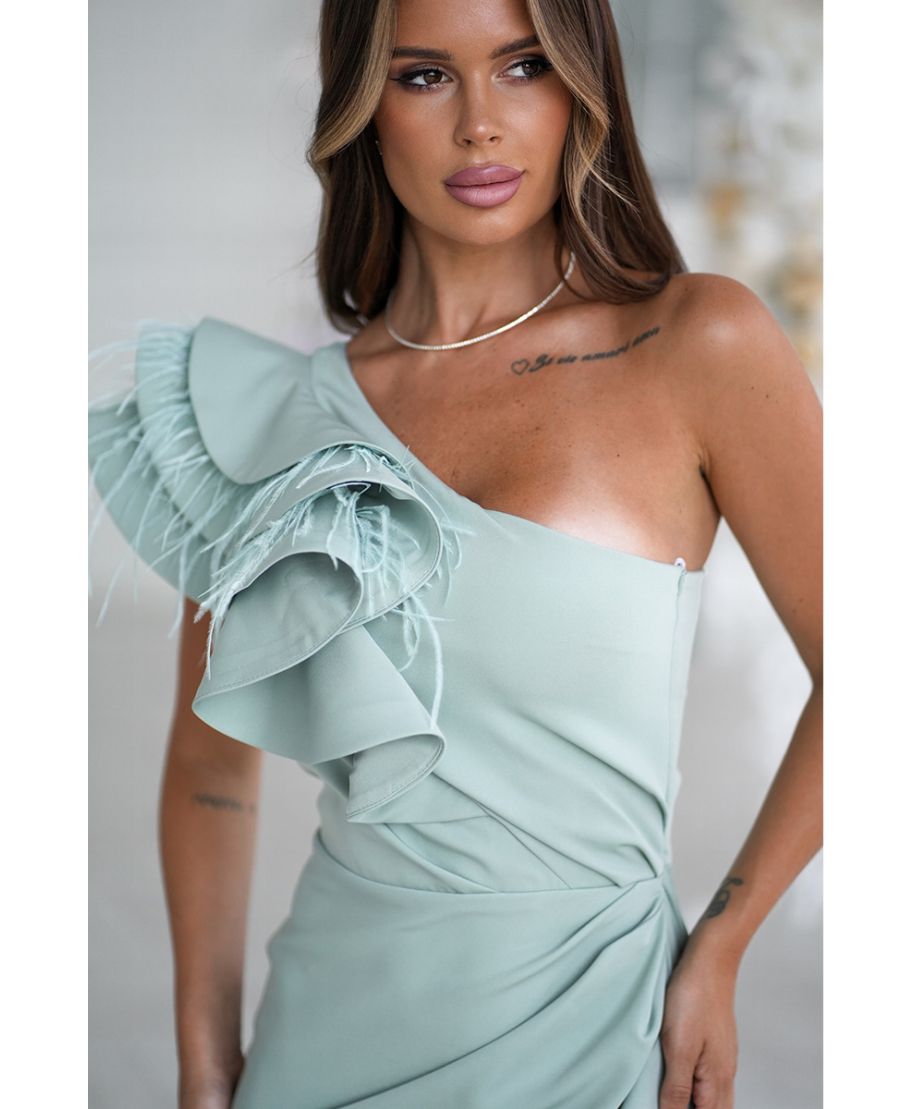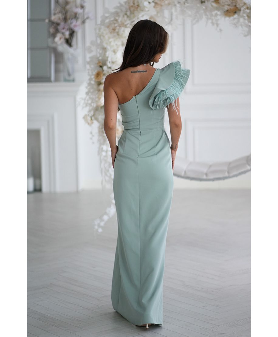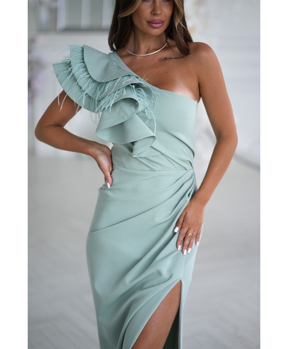 Abito elegante mono spalla color salvia - Fiora
