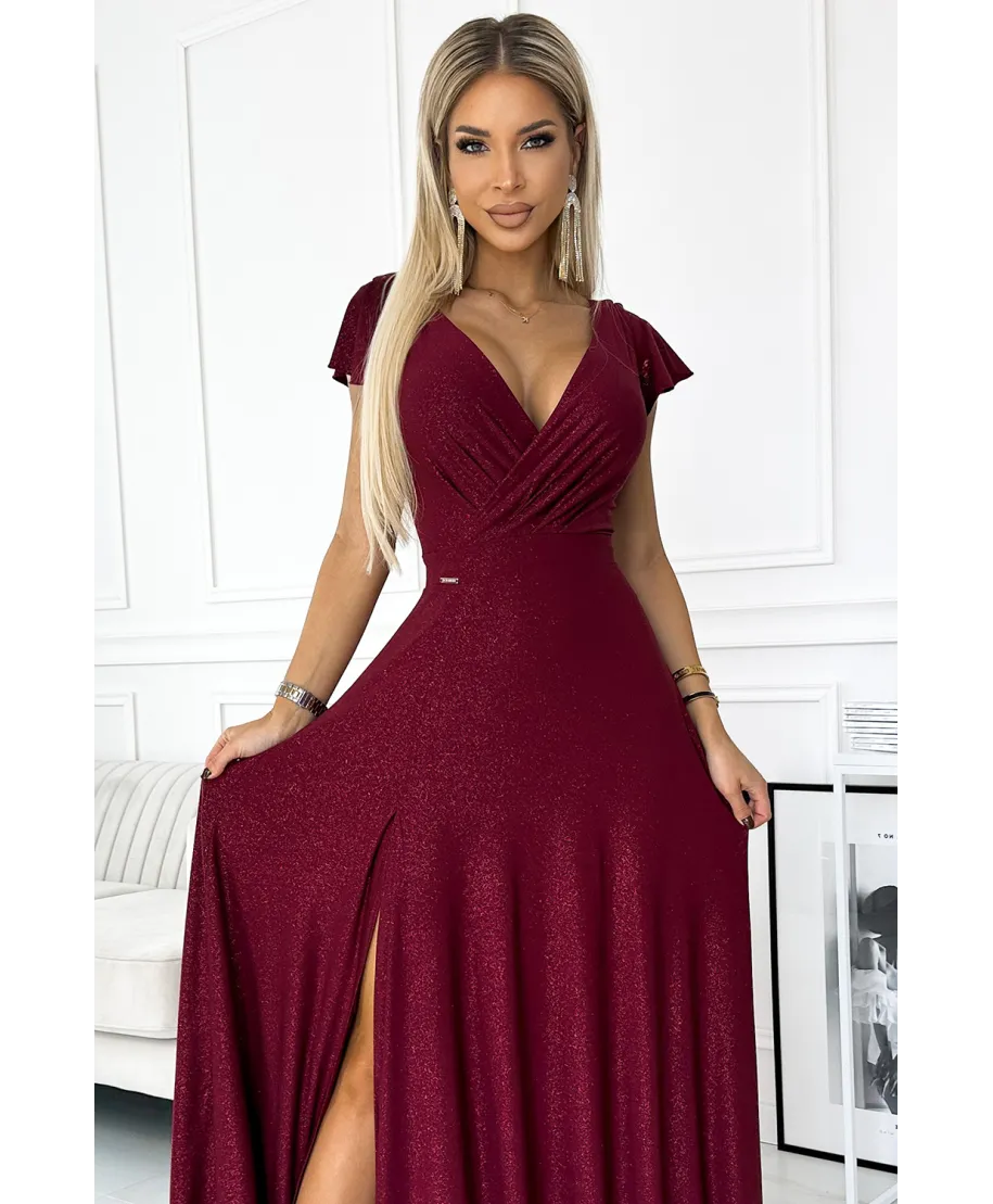 Abito lungo da cerimonia con tessuto fluido e spacco elegante – Linea Crystal - GOGOLFUN.IT