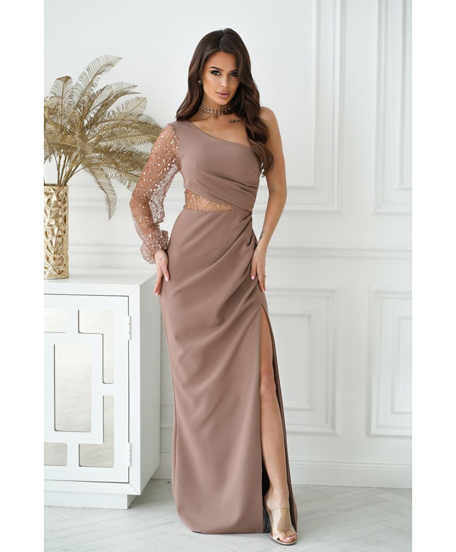 Abito lungo elegante da donna - Monospalla - Colore cammello