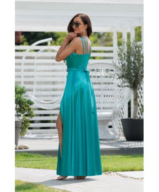 Abito lungo elegante, in raso - Con spacco e schiena a fasce Sottili - Turchese