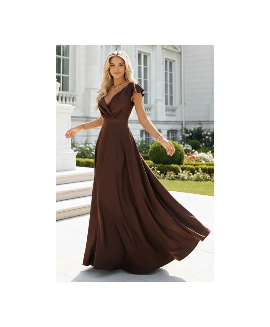 Realizzato in Polonia con materiali di alta qualità, l’abito lungo in raso marrone cioccolato unisce comfort, raffinatezza e versatilità, adattandosi a ogni tipo di evento formale o di festa serale.