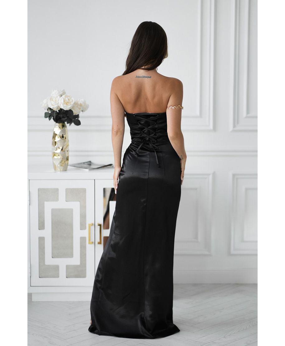 Abito lungo in satin lucido, colore nero elegante e intenso - Rose