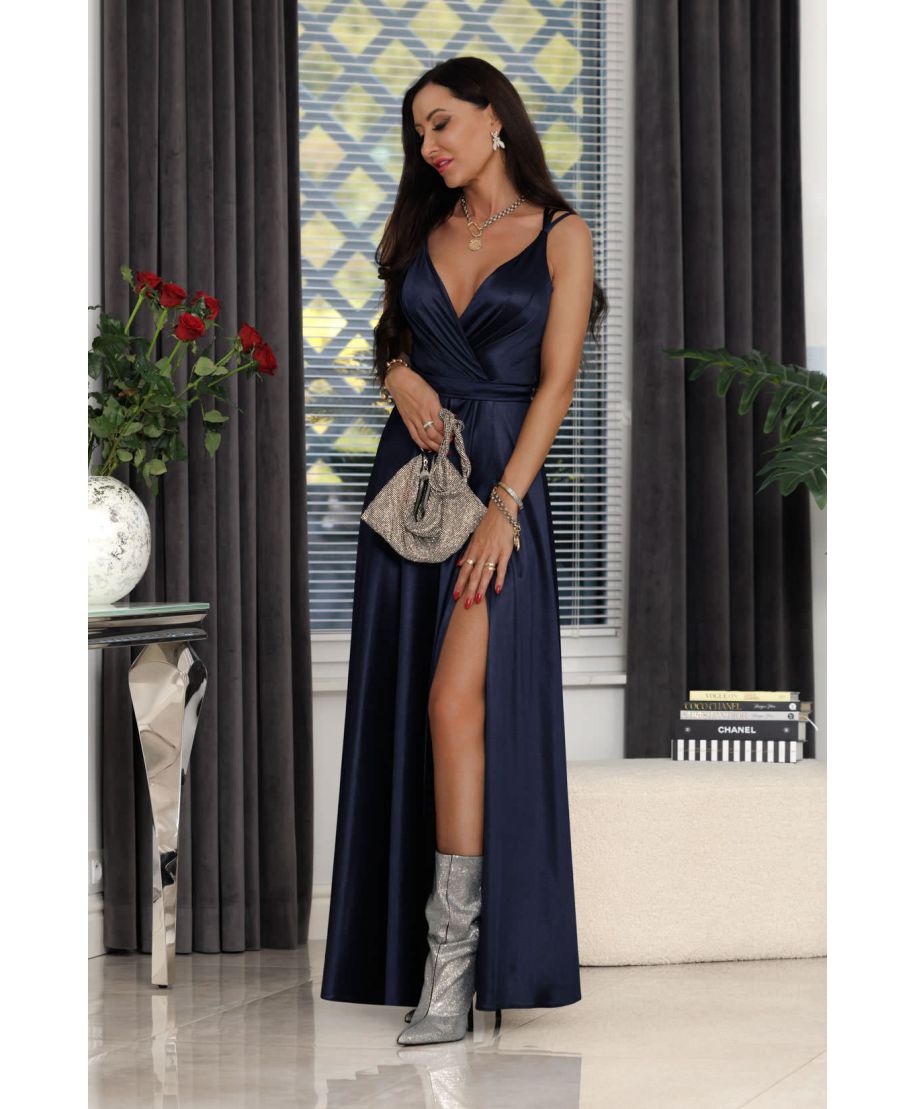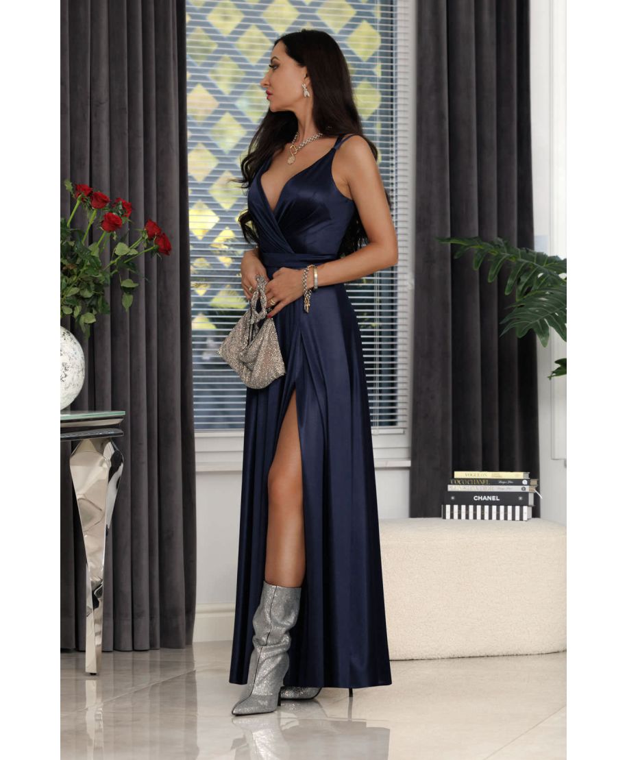 Abito lungo MARINA in satin blu – eleganza per occasioni speciali
