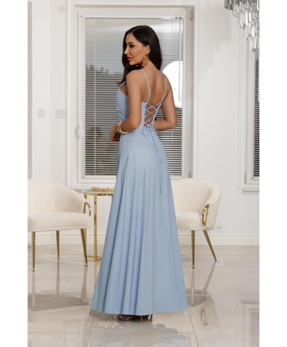 Abito da cerimonia NATHALIE - Lungo in crepe francese - Colore azzurro