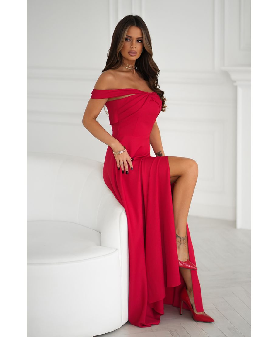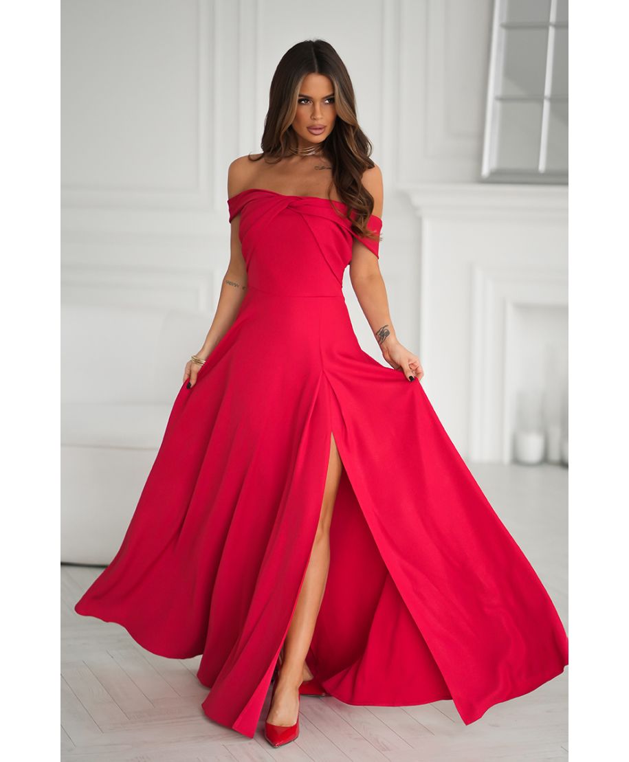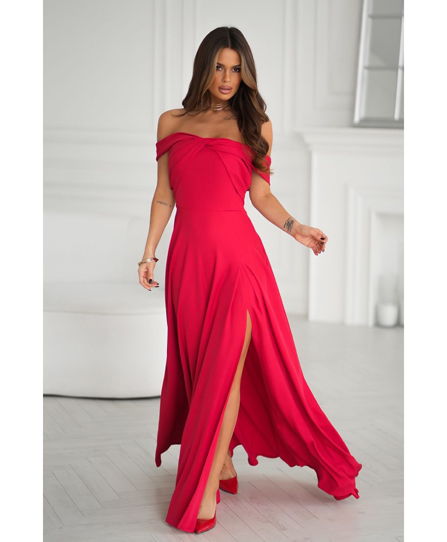 Vestito lungo rosso con scollo alla spagnola – Eleganza e sensualità in un solo capo