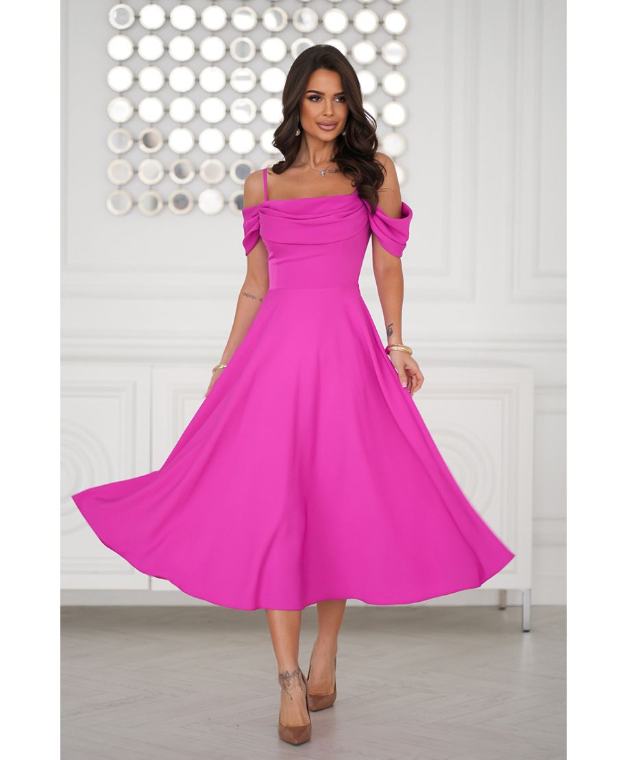 Un bellissimo abito in stile spagnolo con maniche cadenti. Esalta la tua femminilità con questo abito midi da cerimonia , perfetto per eventi