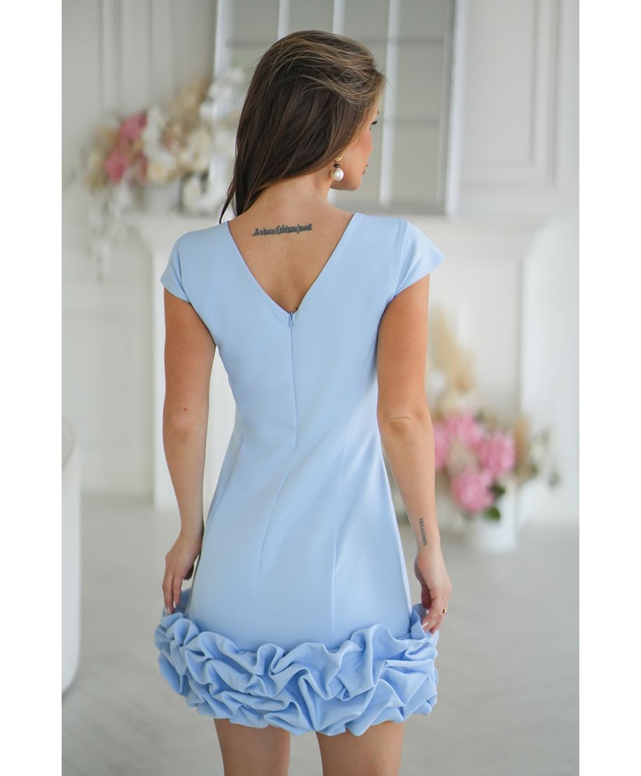 Abito mini da cerimonia azzurro con linea minimal e balza voluminosa – Marzia