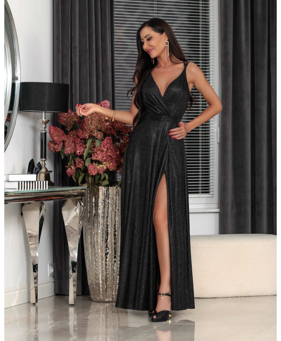 Abito nero lungo - MARINA - Effetto brillante – Ideale per matrimoni, serate di gala e eventi serali