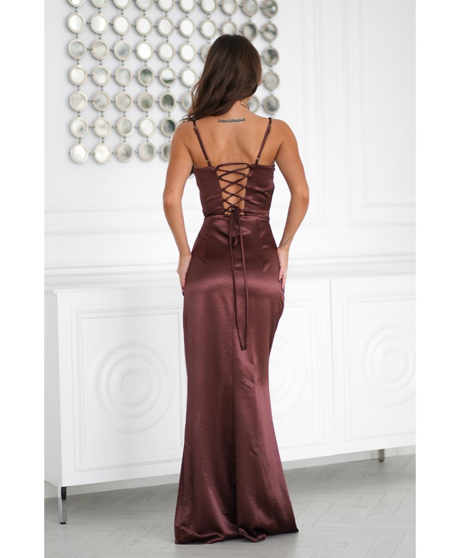 Abito Satinato Maxi con Corsetto - Color Cioccolato - Eleganza Sensuale per Occasioni Speciali