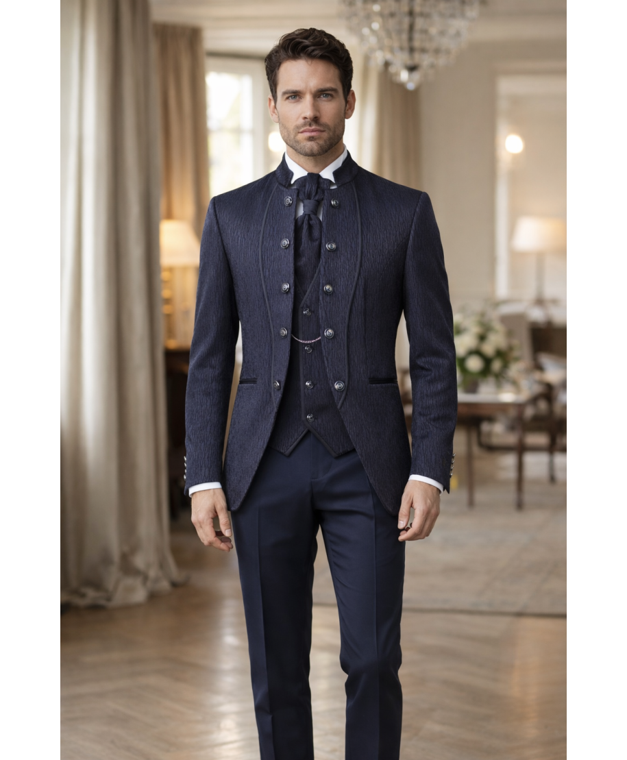 • Abito Sposo con gilet e plastrom, blu - Ruggiero
