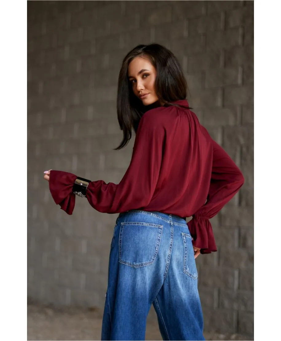 Camicia donna Roco Fashion modello Isabel 216498 – Blusa elegante in viscosa bordeaux