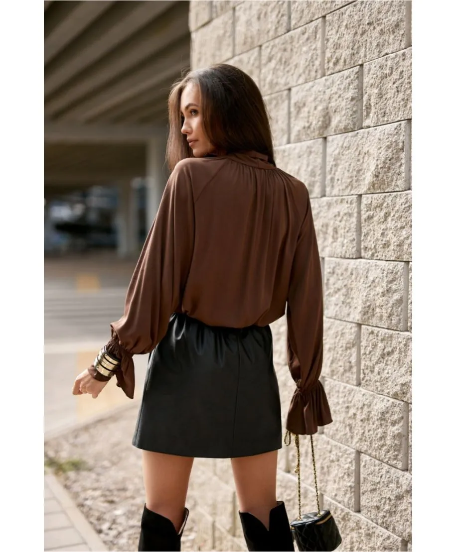 Blusa donna elegante marrone in viscosa con fiocco – Roco Fashion Isabel 216498