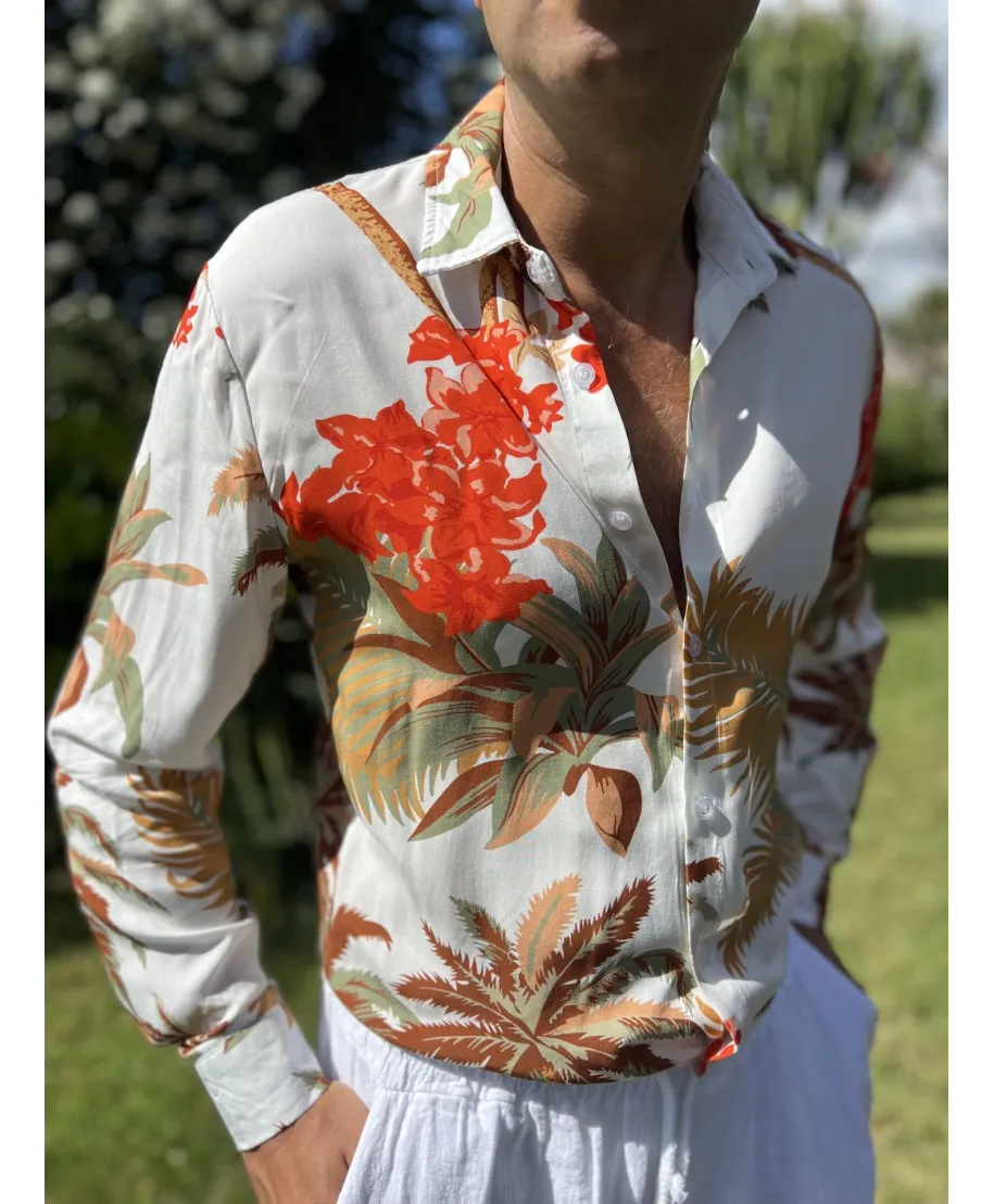 Camicia hawaiana in viscosa - Camicia estiva uomo, manica lunga Tod