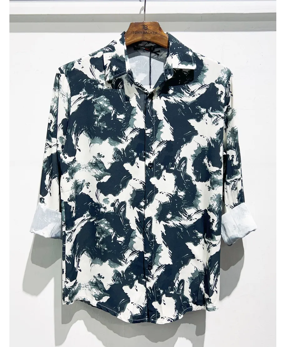 Dal design audace e ricercato, questa camicia da uomo con collo italiano è la scelta ideale per chi vuole distinguersi con stile. Realizzata in tessuto leggero e traspirante, si caratterizza per una stampa avion astratta su fondo bianco, capace di conferire personalità anche all’outfit più essenziale. Perfetta da indossare sia con un pantalone sartoriale che con un denim, è una camicia versatile pensata per la stagione primavera/estate.