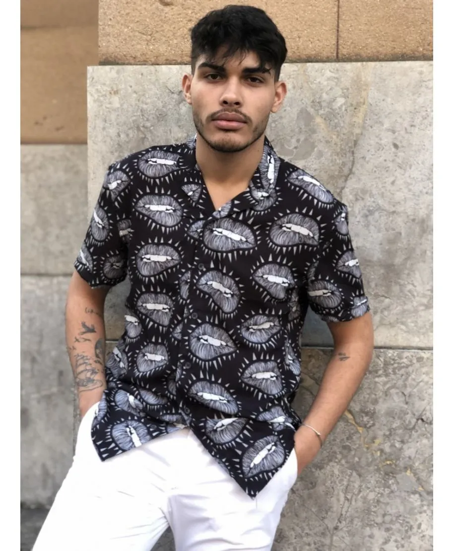 Camicia uomo Smile - Mezza manica - Camicia fantasia nera