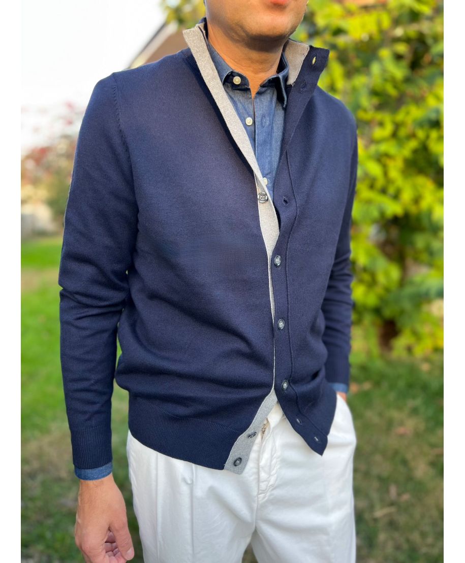 Cardigan Blu Interno Grigio - Diego: Eleganza e Comfort per Ogni Uomo