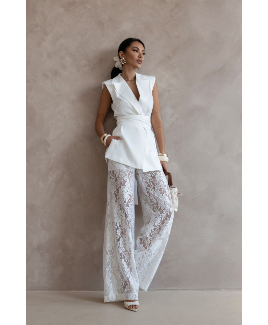 Completo donna elegante con pantaloni a palazzo in pizzo