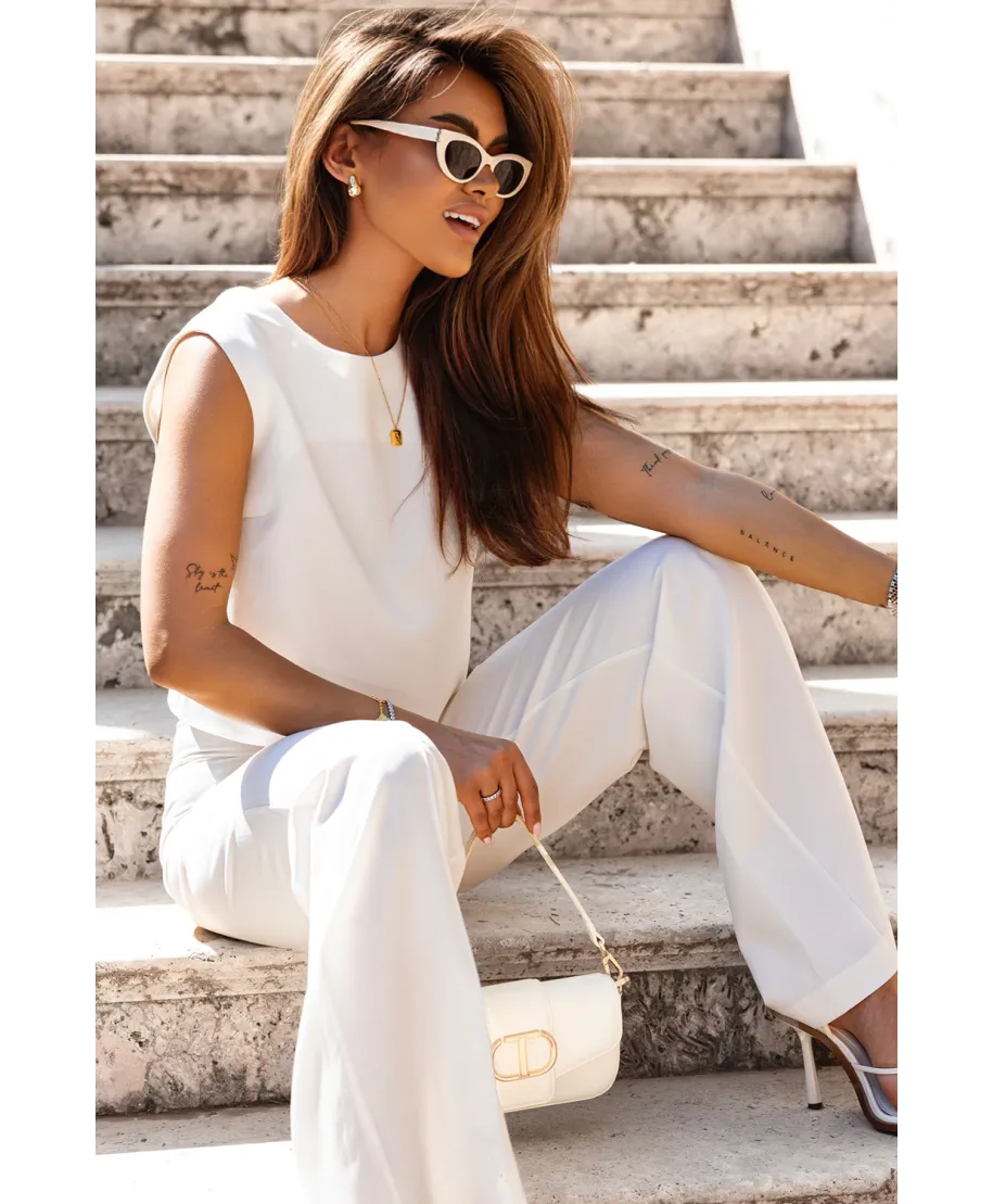 Completo elegante da donna - Porto - color crema - pantaloni ampi
