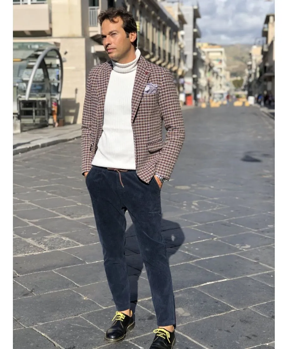 Pantaloni blu in velluto liscio in velluto liscio, perfetti per serate eleganti. Design raffinato di Paul Miranda per uno stile sofisticato. Made in Italy Lunghezza alla caviglia con risvolto Chiusura con cerniera e bottone...
