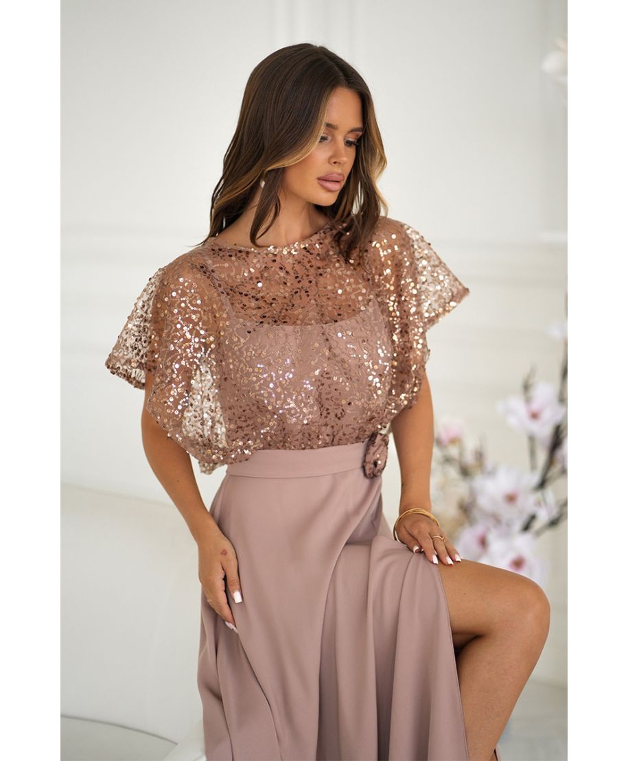 In conclusione, l'abito elegante da cerimonia "Eleonora" incarna l'essenza della moda cerimoniale contemporanea, risultando un must-have nel guardaroba di ogni donna che desidera affrontare gli eventi speciali con sicurezza e grazia. Scopri l'eleganza senza tempo e la qualità superiore nei dettagli dell'abito "Eleonora" e trasforma ogni occasione in un momento indimenticabile. Disponibile ora nella nostra collezione esclusiva dedicata agli abiti da cerimonia, l'abito "Eleonora" è pronto a diventare il protagonista del tuo prossimo evento speciale. sukienka na cienkich ramiączkach, wykonana z lekkiego materiału, uzupełniona połyskującym cekinowym bolerkiem z różą na pasku. Błyszczące wykończenie dodaje stylizacji szyku i blasku, czyniąc ją idealnym wyborem na wieczorne wyjścia i wyjątkowe okazje.Skład:Tkanina:93%Poliester, 7% ElastanKod produktu: 332-22Kolor: camelWymiary modelki: 88-60-90Zamek: kryty z tyłuRozmiar na modelce: 38Model występuję w rozmiarach 38, 40, 42, 44, 46, 48