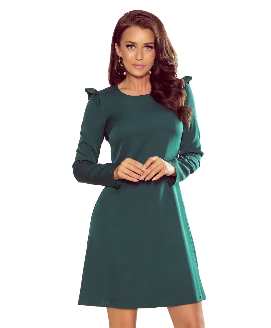 Vestito lungo elegante verde brillante che valorizza ogni silhouette con eleganza e stile femminile.