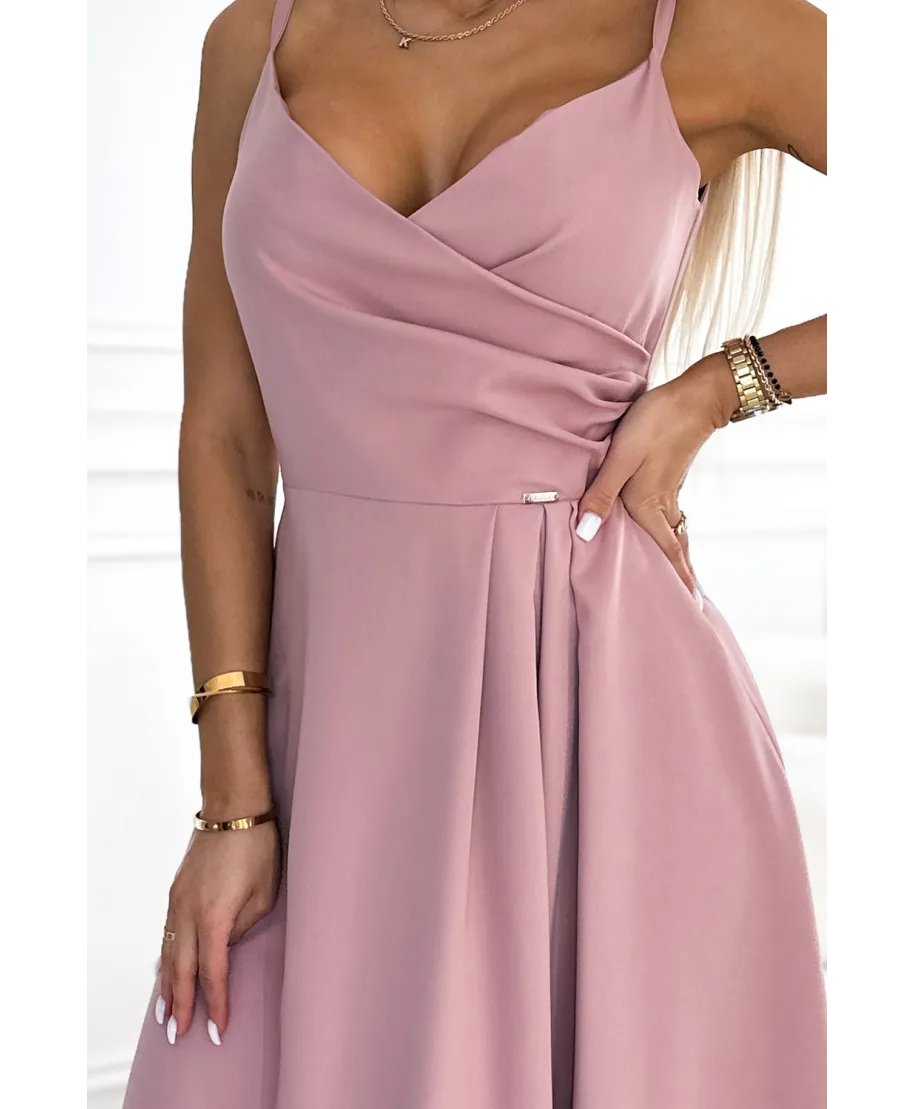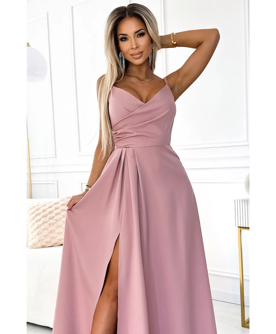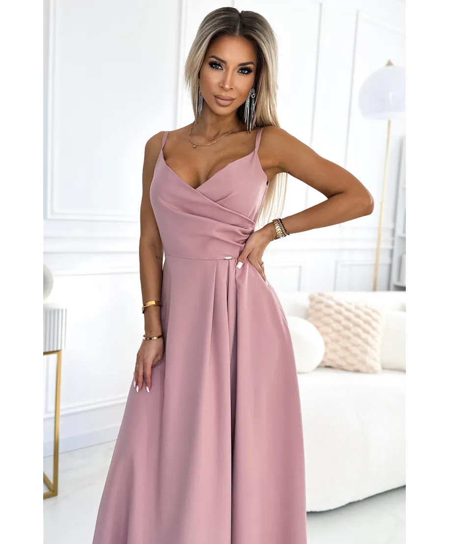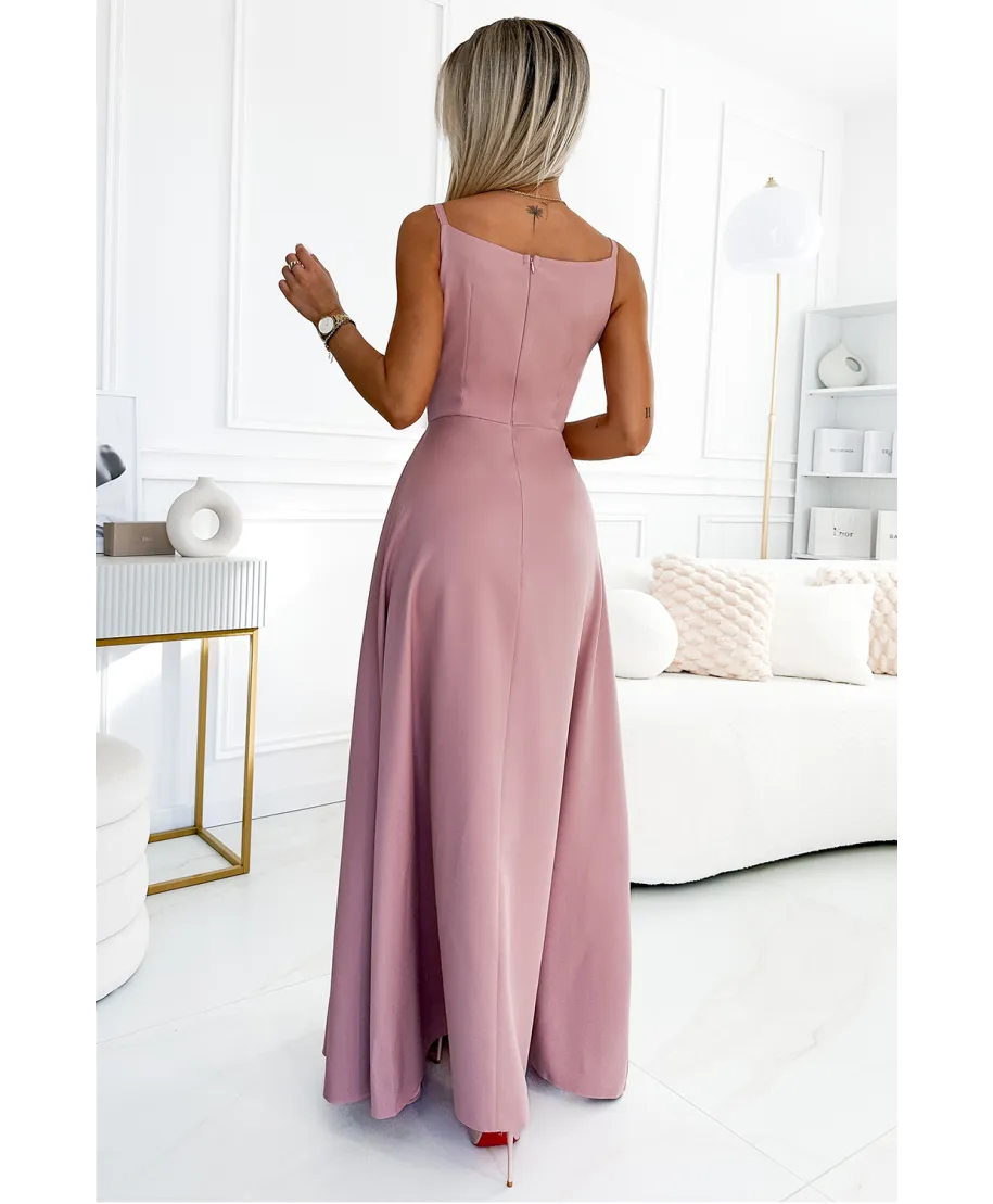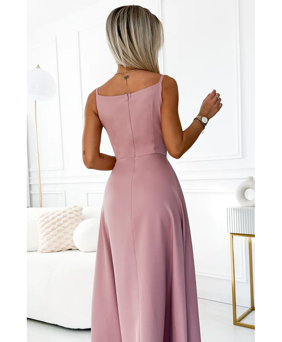 299-16 CHIARA elegancka maxi długa suknia na ramiączkach - BRUDNY RÓŻ