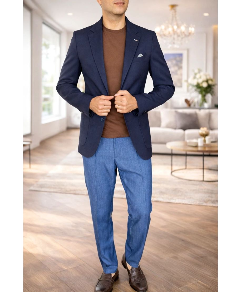 Giacca uomo in misto lino, blu avio - Managua - Paul Miranda