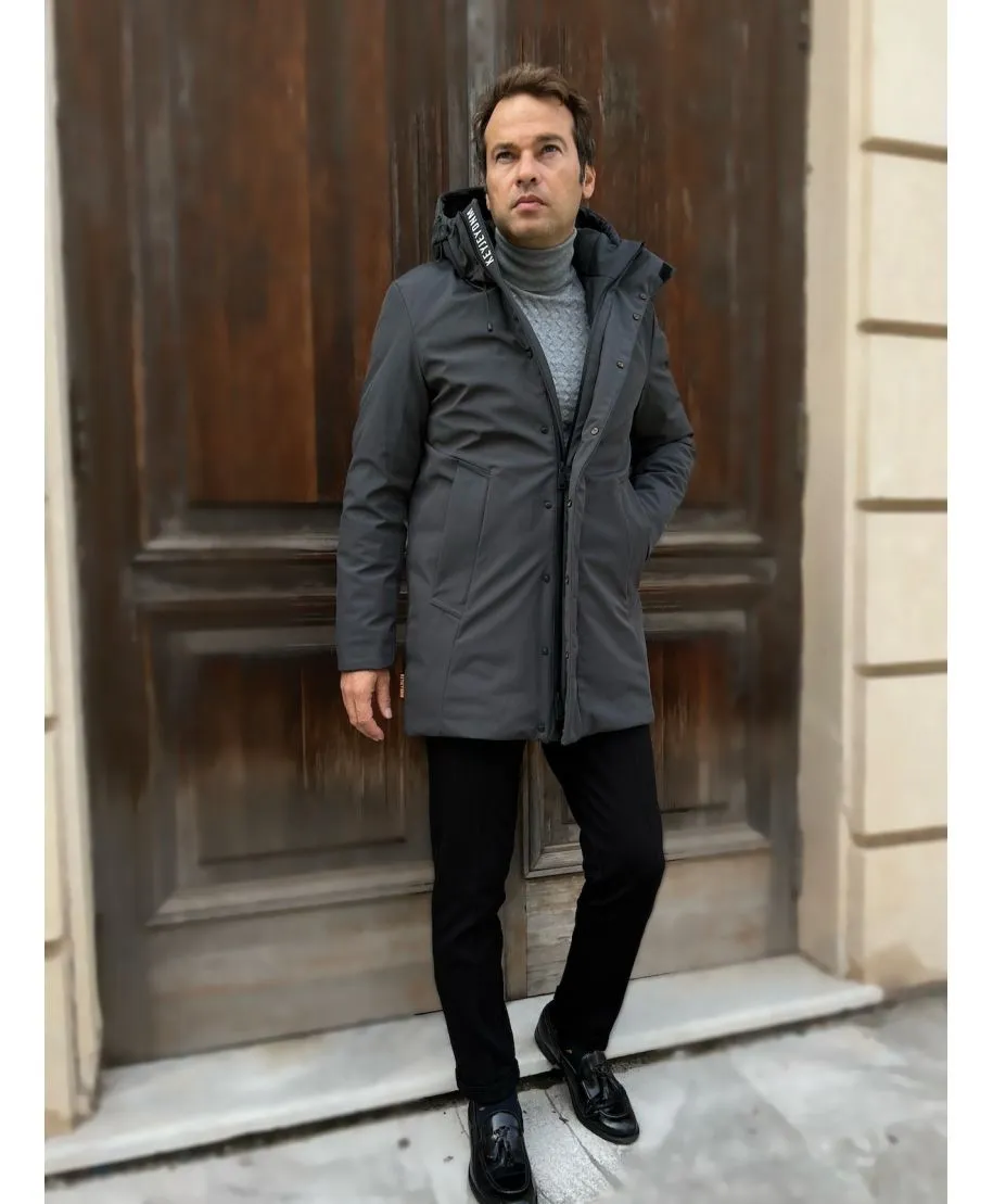 Giubbotto invernale uomo, con cappuccio - Colore grigio antracite - Key jey