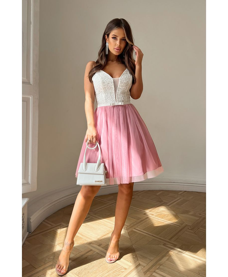 Vestito corto elegante con gonna in tulle e corpetto ricamato