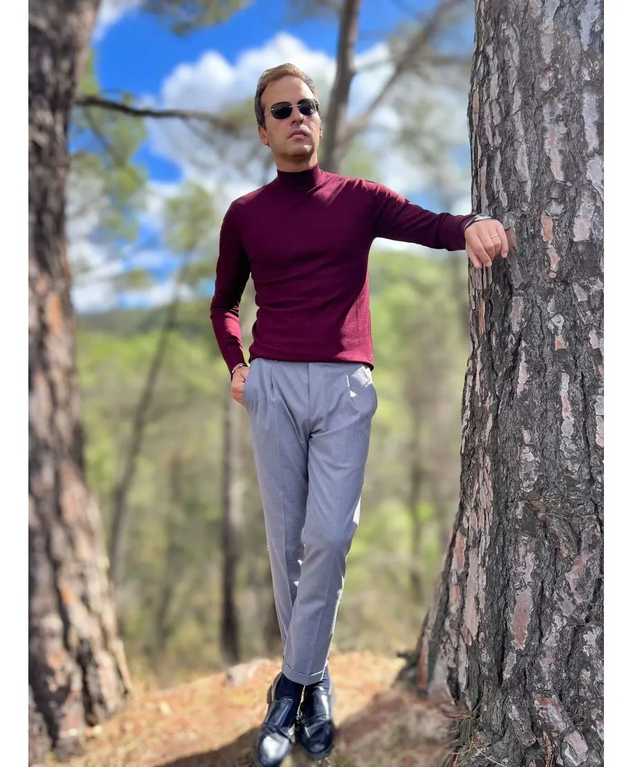 Abbina il tuo Lupetto Bordeaux con un paio di jeans scuri per un look casual ma sofisticato, oppure opta per un pantalone in velluto nero per un outfit serale di classe. Completa il tutto con una giacca sartoriale per un aspetto impeccabile in ufficio. Il bordeaux si sposa perfettamente con tonalità neutre come il grigio, il bianco e il nero, rendendo questo maglione un pezzo indispensabile nel guardaroba di ogni uomo.