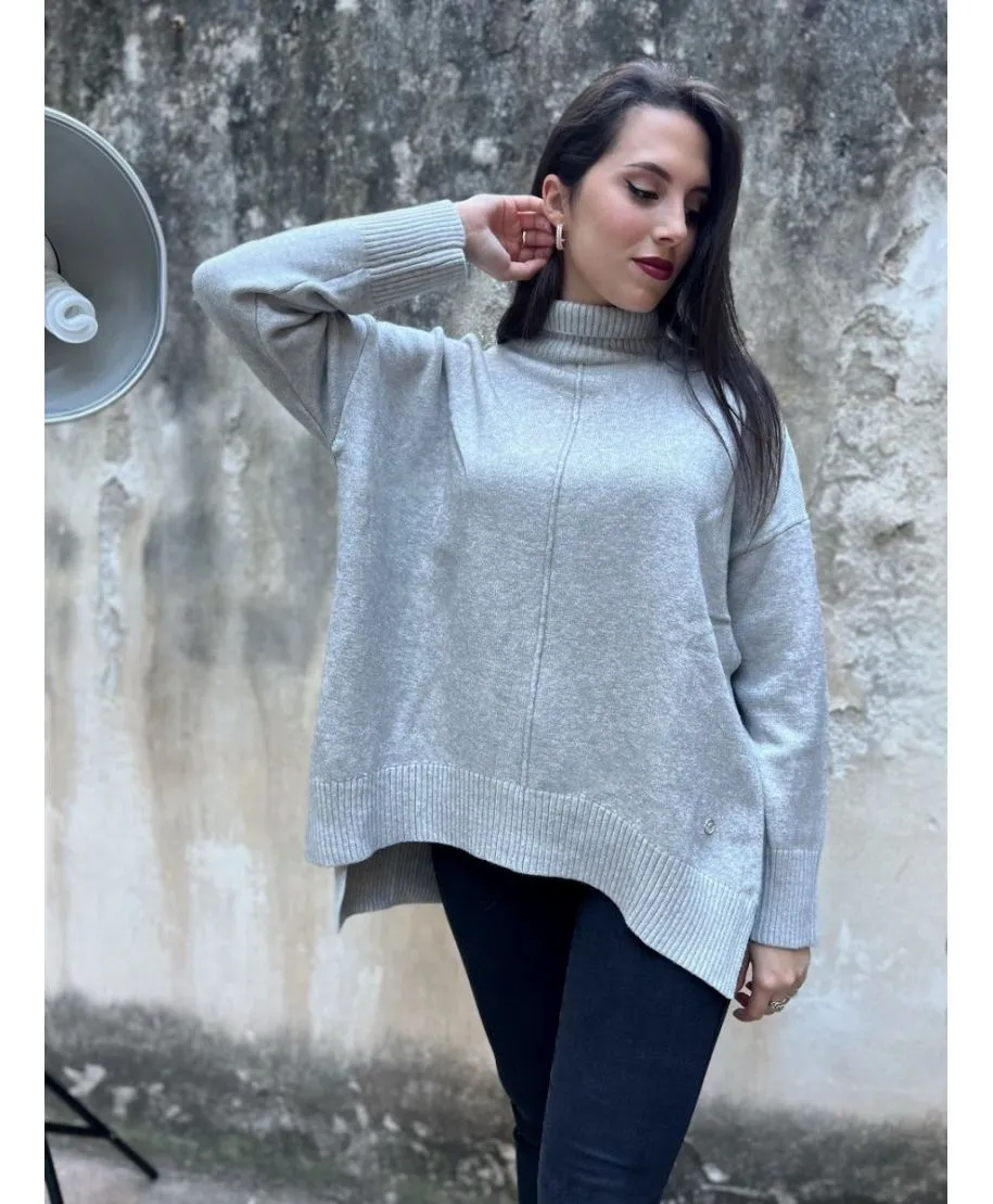 Maxi pull - Grigio perla - Collo alto - Key Jey