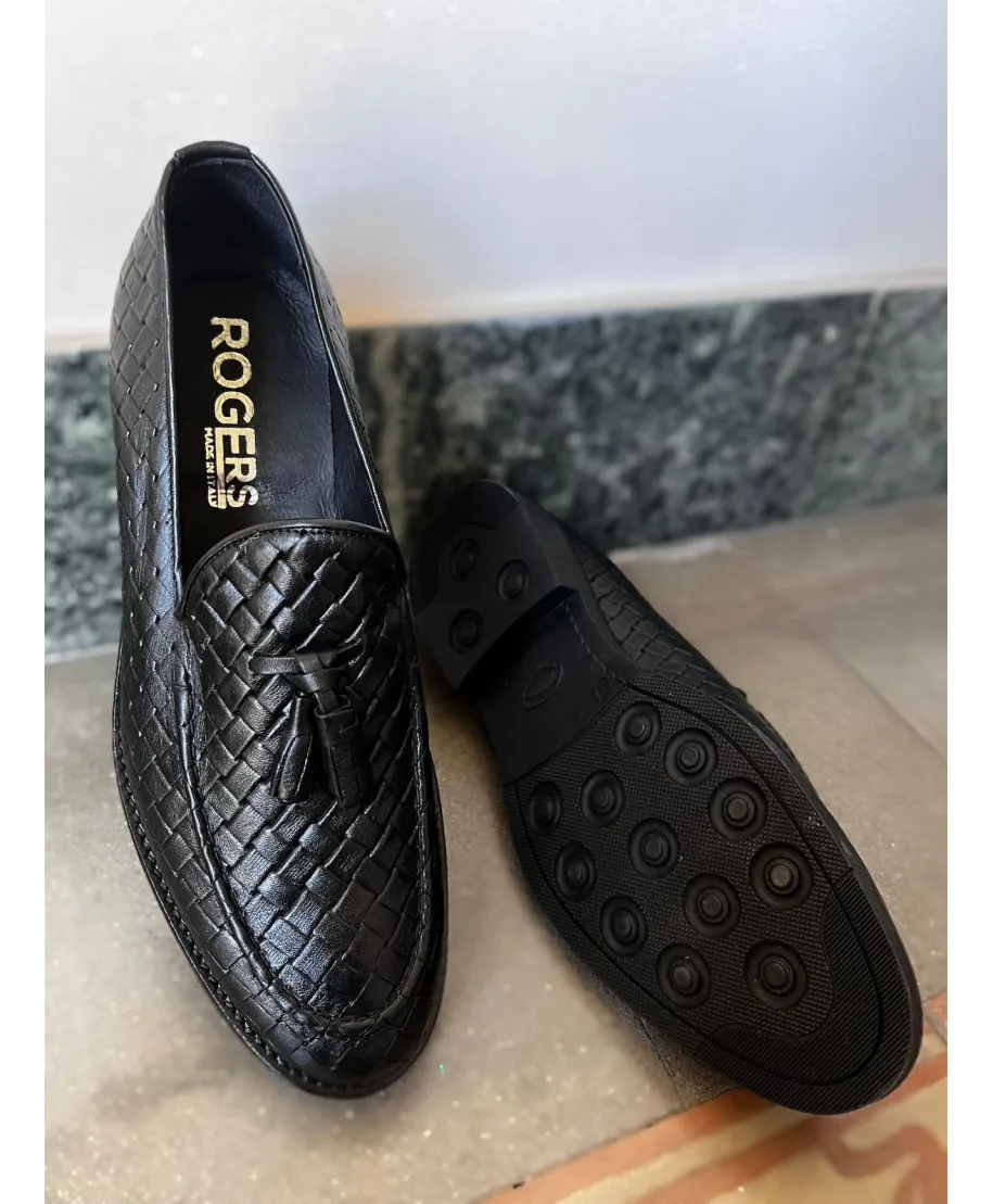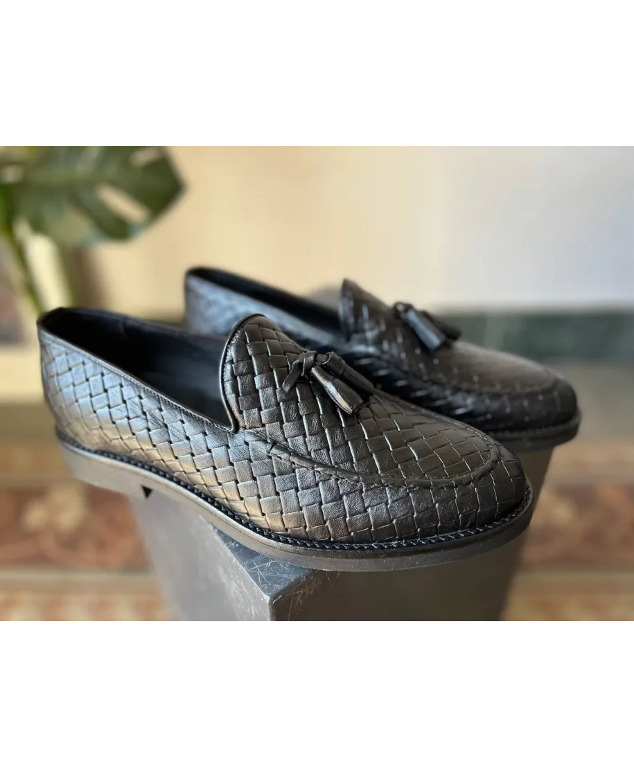 Mocassini intrecciati uomo neri in vera pelle – Made in Italy