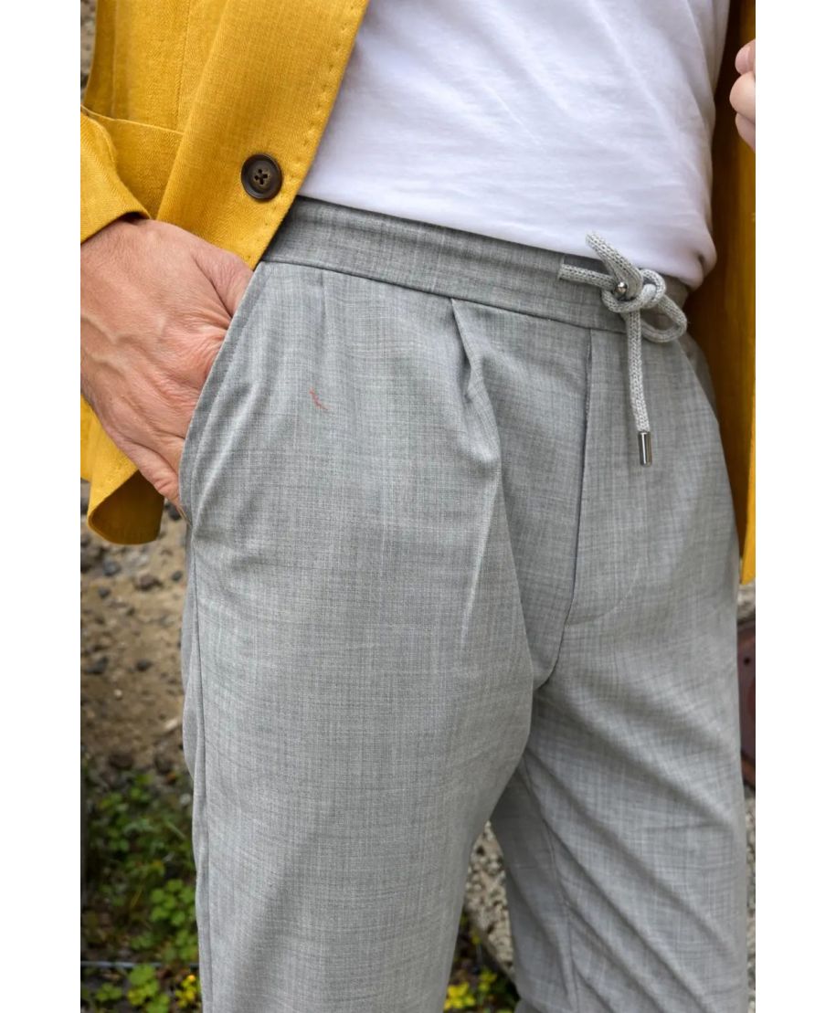 Colore grigio perla, Elastico e coulisse in vita e cerniera, tasche